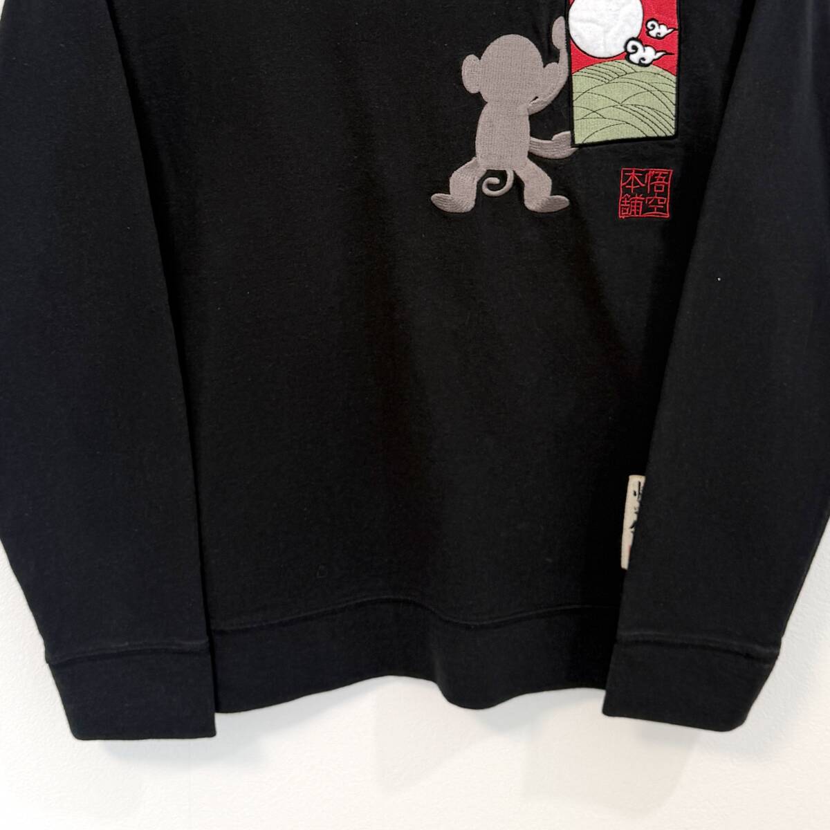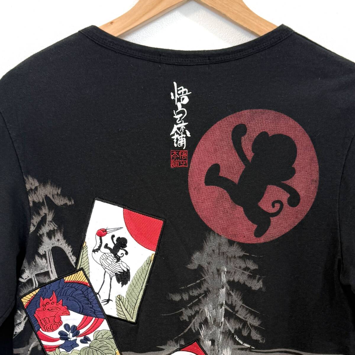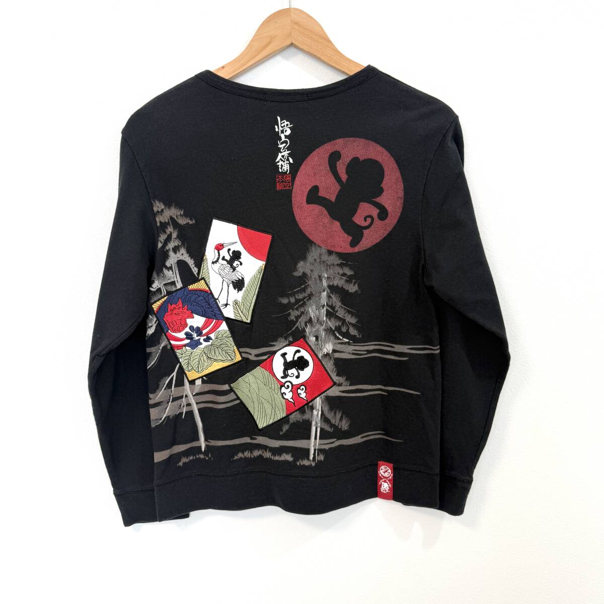 f3084ii GO-COO!! MONKEY MADE(ゴクー!!モンキーメイド) サイズS 和柄ロングTシャツ 悟空本舗 ブラック系 メンズ 綿100%
