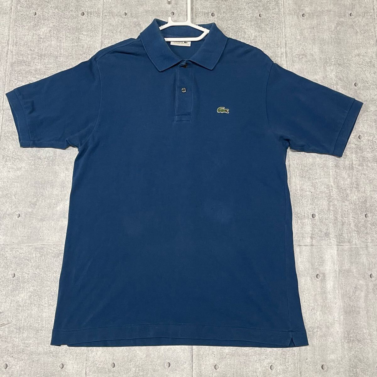 LACOSTE 大きいサイズ 鹿の子 ポロシャツ 単色 無地 紺色 ラコステ  ワンポイント ワッペン ファブリカ製 日本製 半袖ポロシャツ 早5602