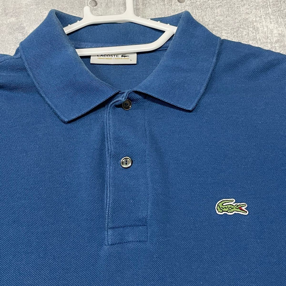 LACOSTE 大きいサイズ 鹿の子 ポロシャツ 単色 無地 紺色 ラコステ  ワンポイント ワッペン ファブリカ製 日本製 半袖ポロシャツ 早5602 ハイクオリティー MADE IN JAPAN コットン ショートスリーブ
