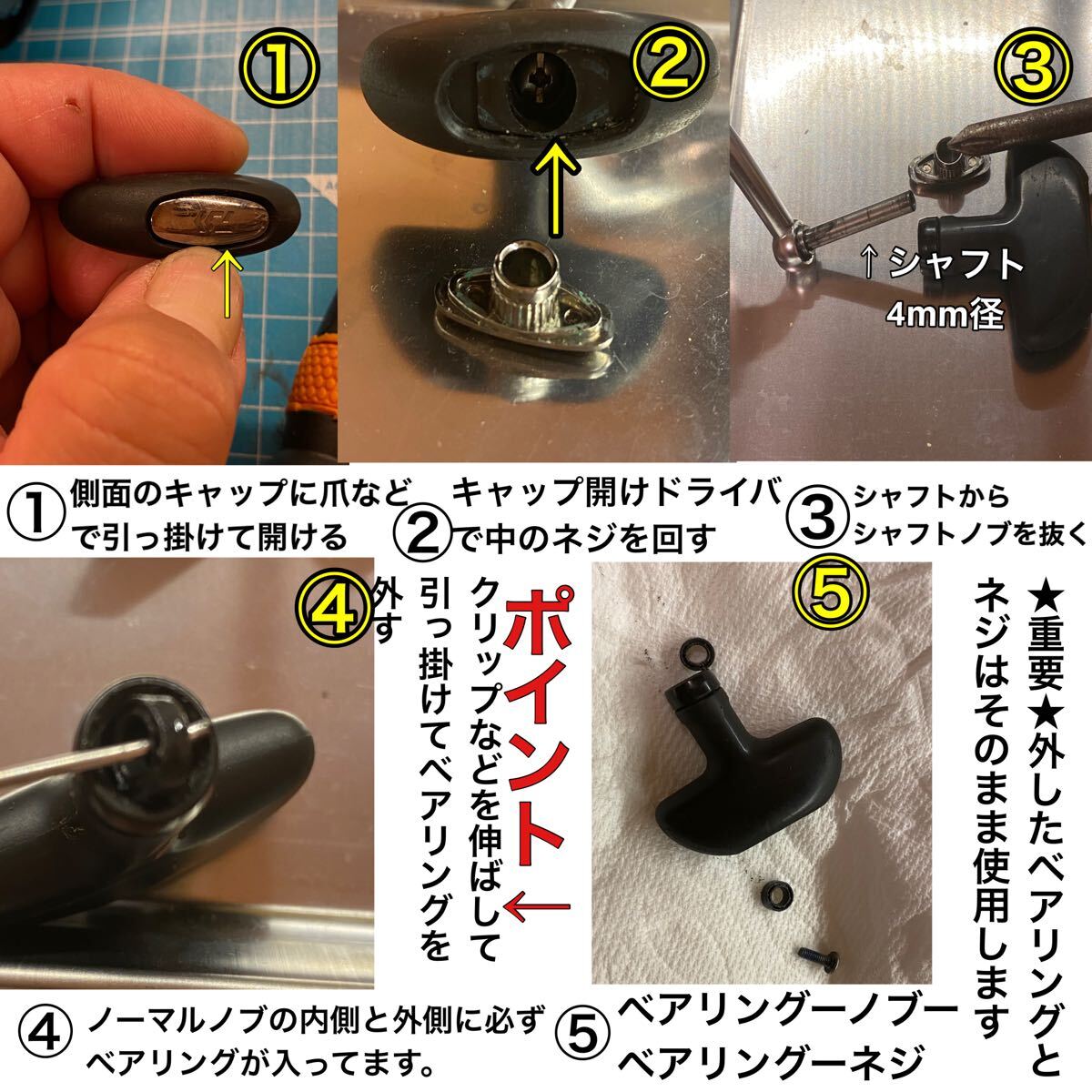 交換できないリールは、リールノブが固定されていて、ドライバーで開けられないものは取付出来ません。また、リールノブ内部ベアリング径が9mmの物は付けられません。(20ステラSW5000XGなどのSW系)