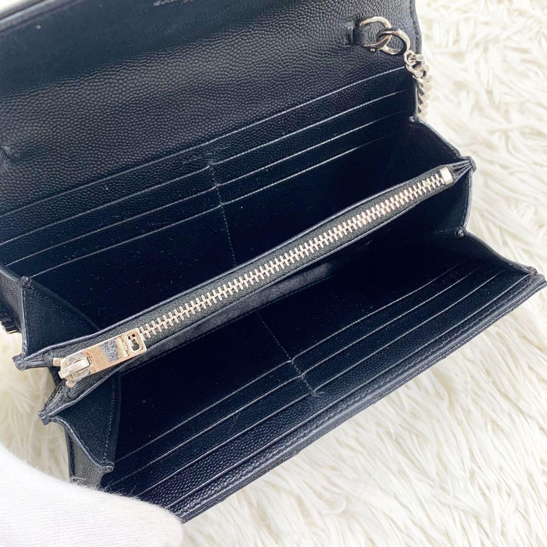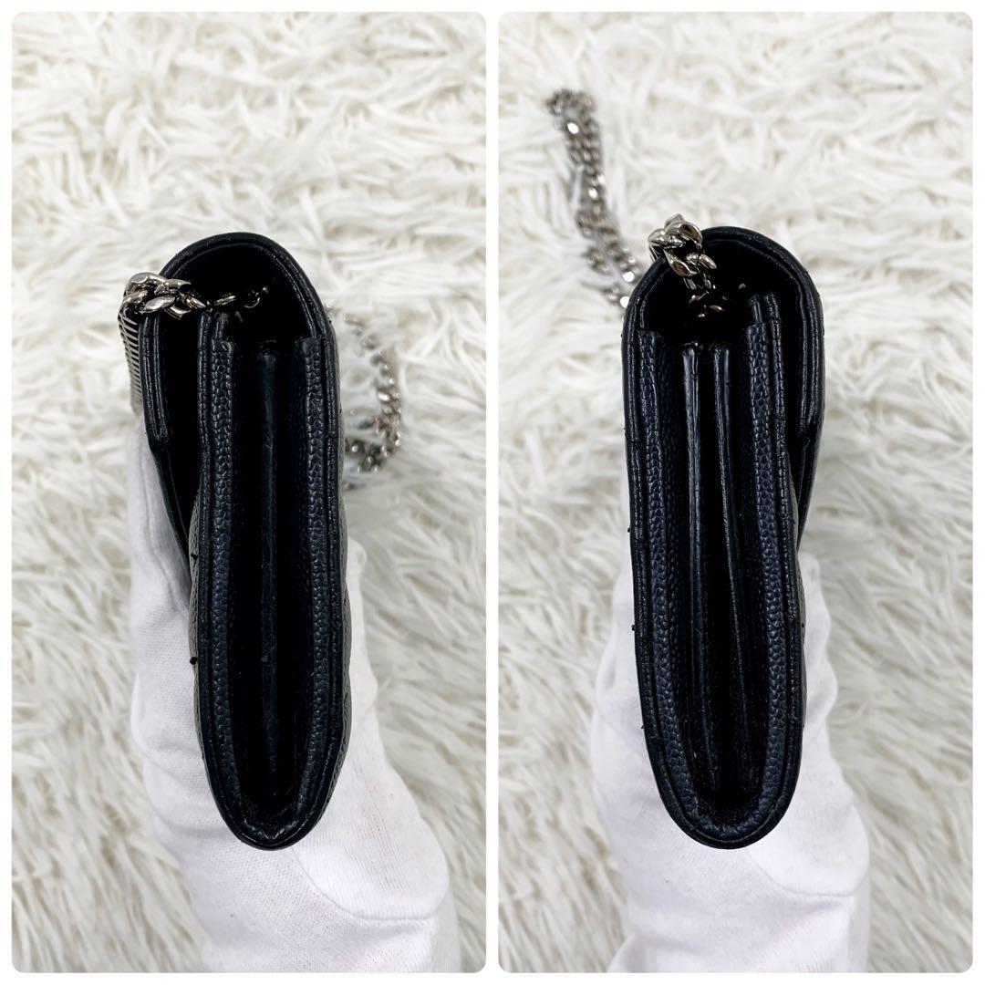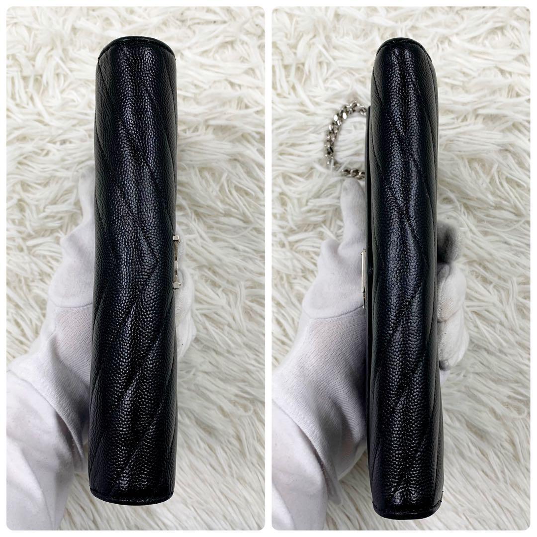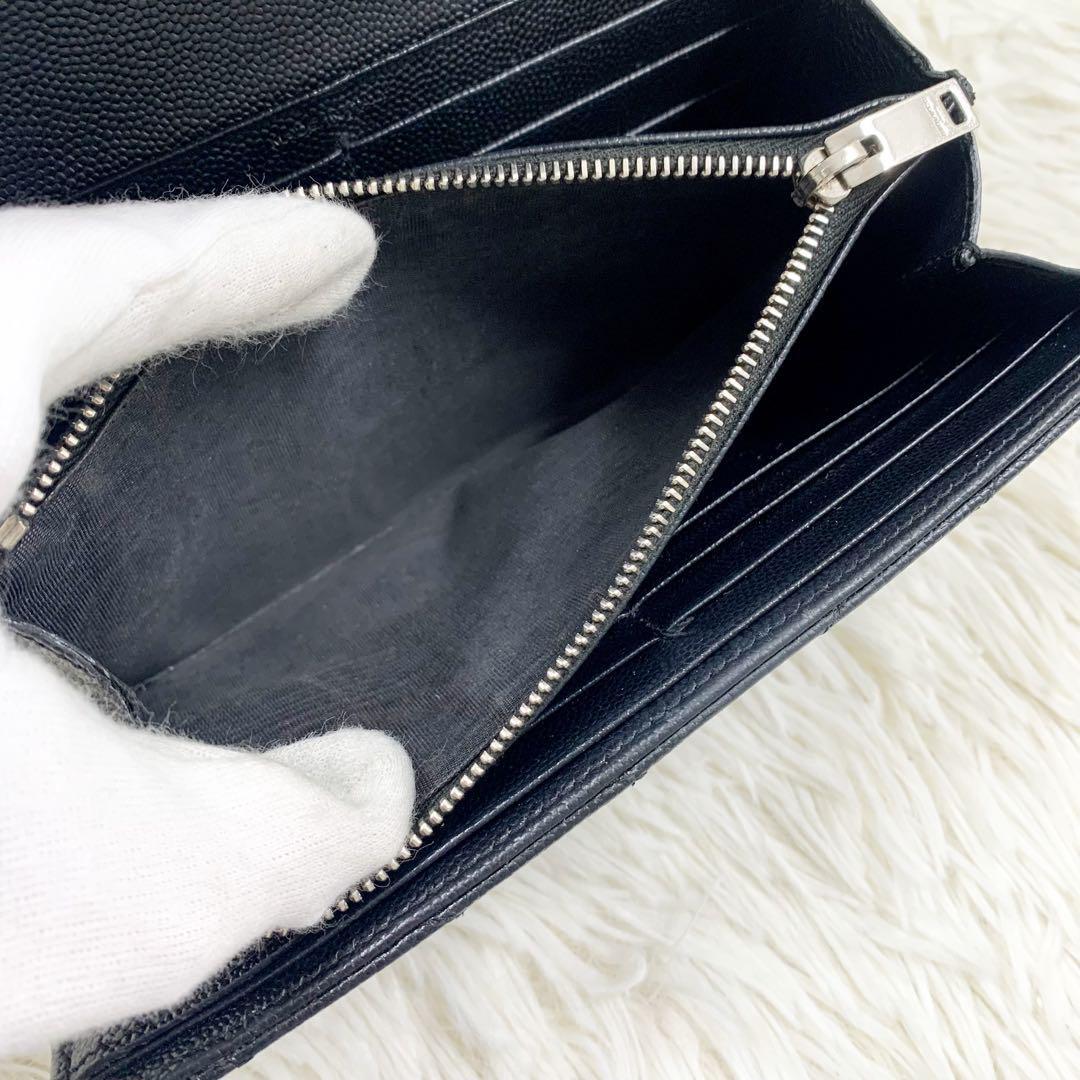 フラップ 二つ折り 長財布 カサンドラ キャビアスキン キルティング Vステッチ シルバーロゴ
