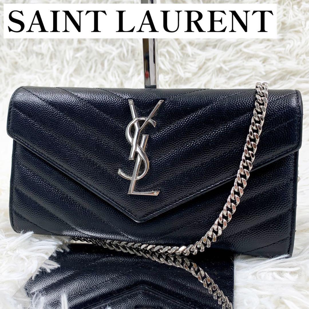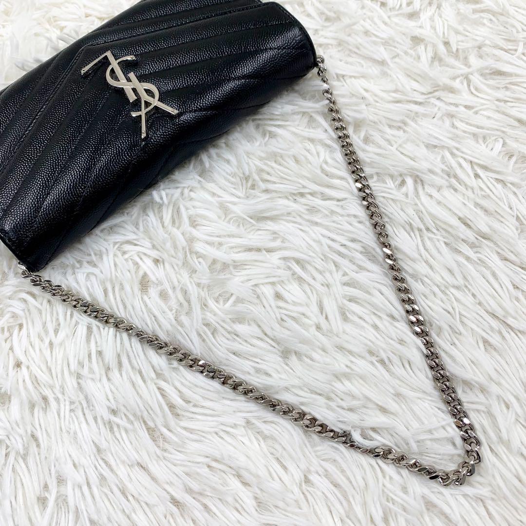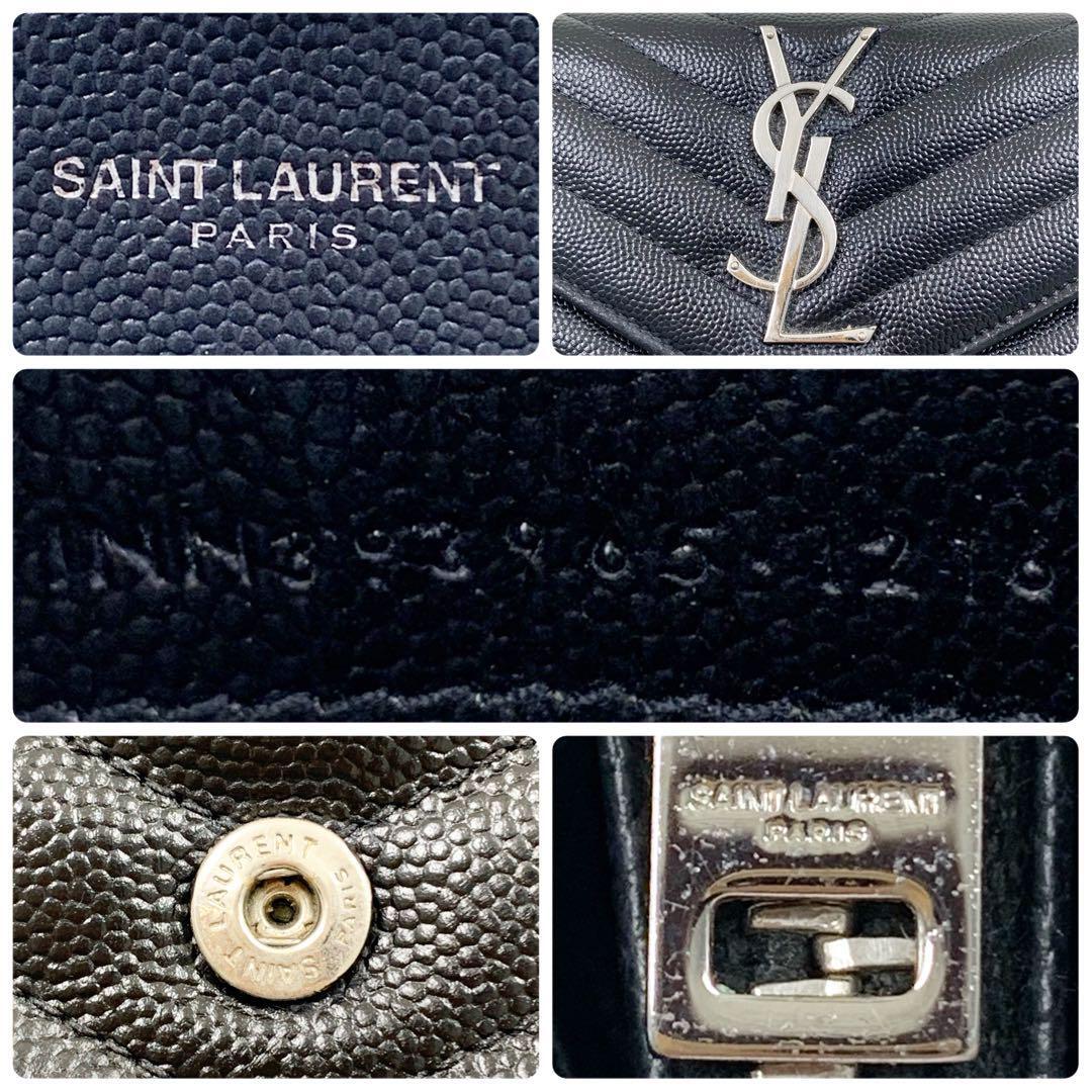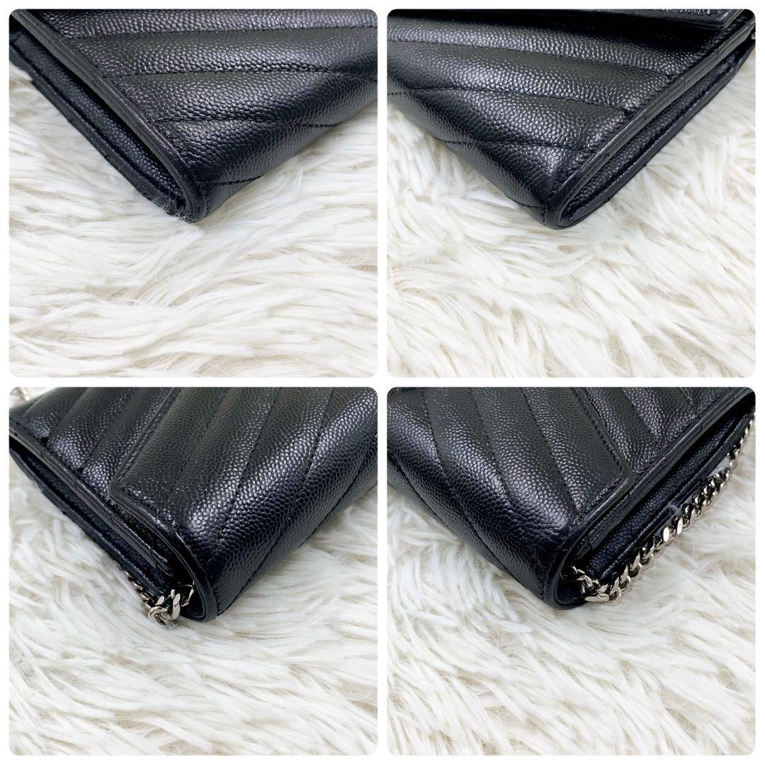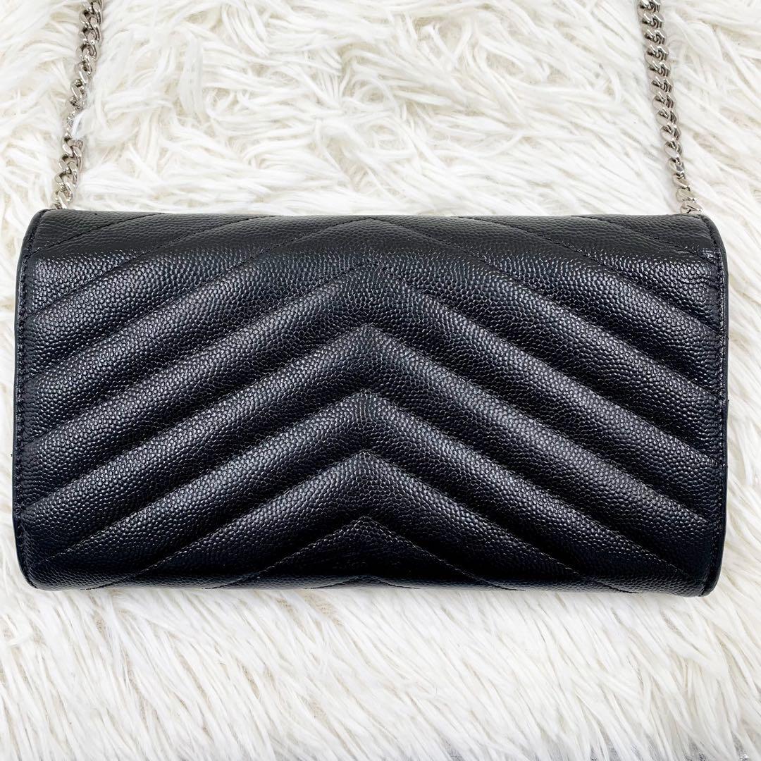 フラップ 二つ折り 長財布 カサンドラ キャビアスキン キルティング Vステッチ シルバーロゴ