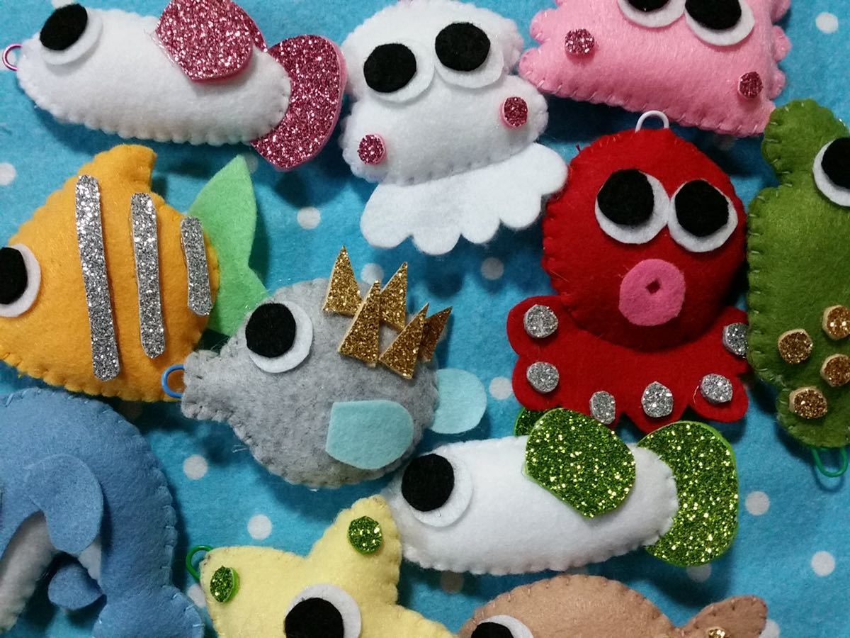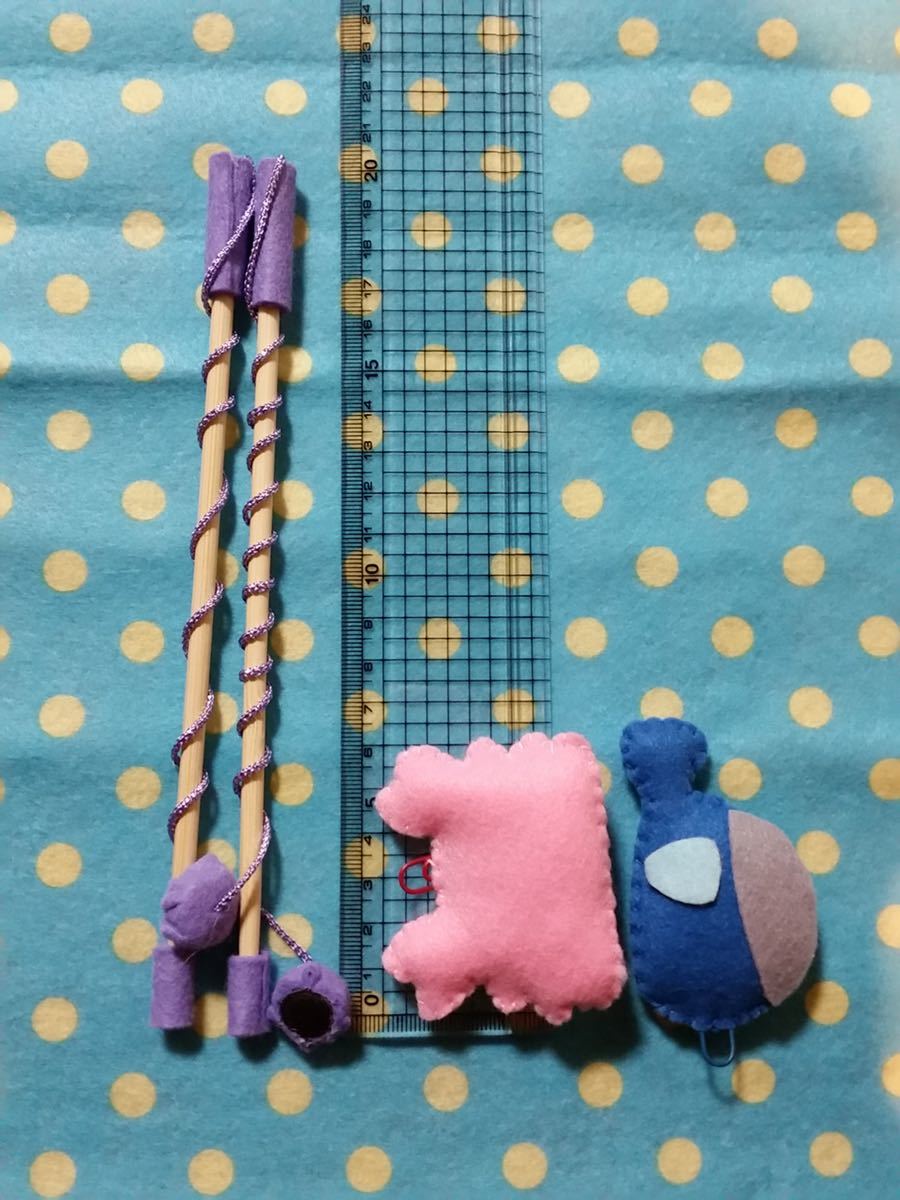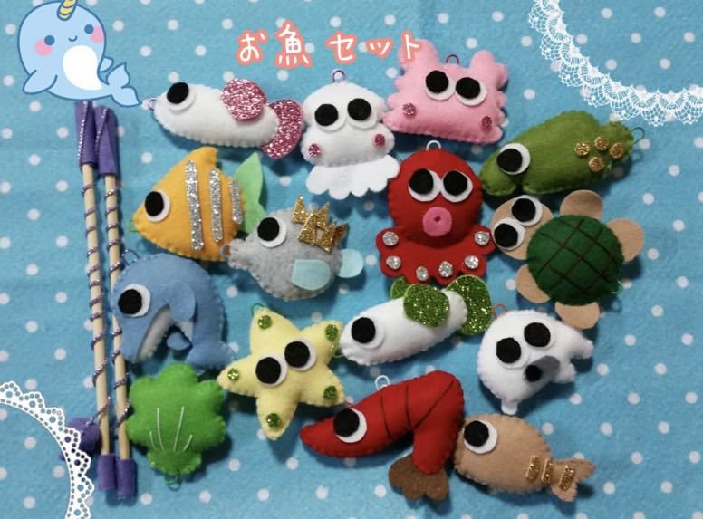 磁石の付いた釣竿でクリップの付いたお魚を釣って遊ぶフェルトのおもちゃです。
