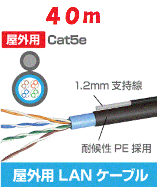 ◆即決 屋外用 LANケーブル 支持線 +コネクタ付 40m