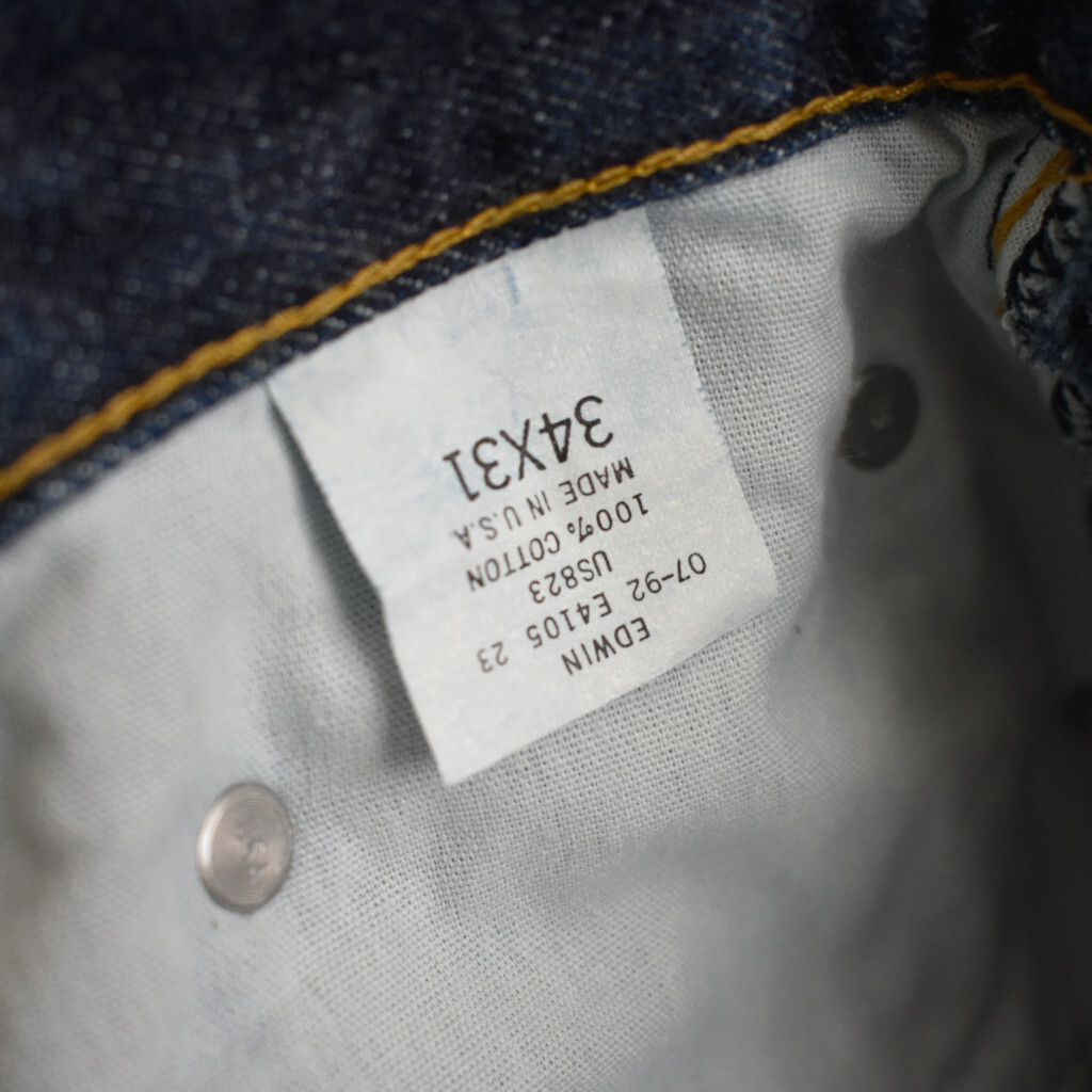 美品 90s EDWIN エドウィン USA製 5P デニムパンツ 真紺 ジーンズ 34 インディゴ ヘビーオンス