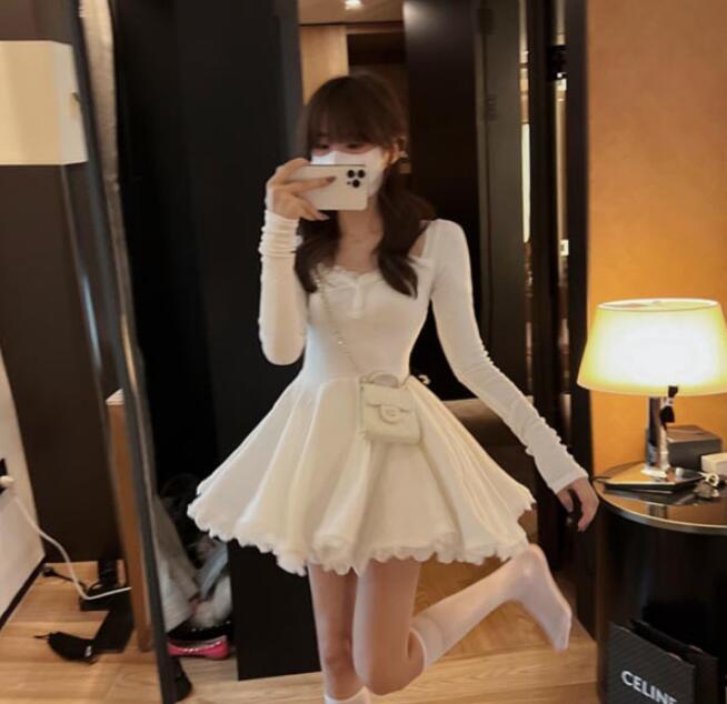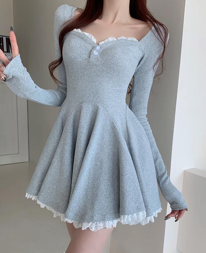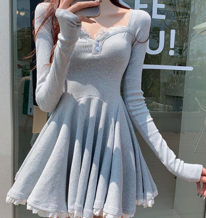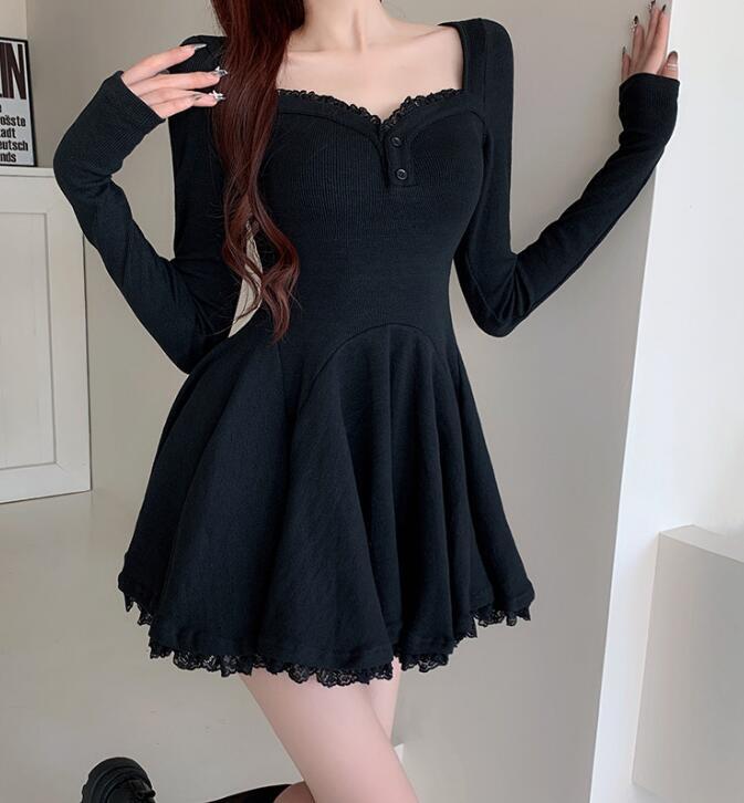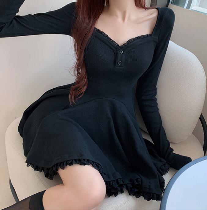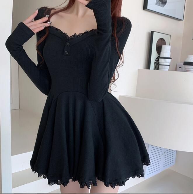 新作推薦ワンピースレディース 着心地抜群 20代30代40代  きれいめ 上質  長袖 レース装飾 ブラックお色選択可