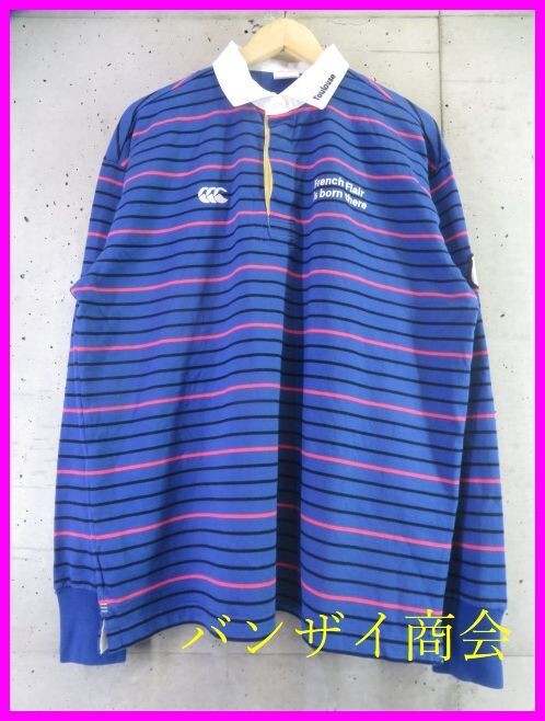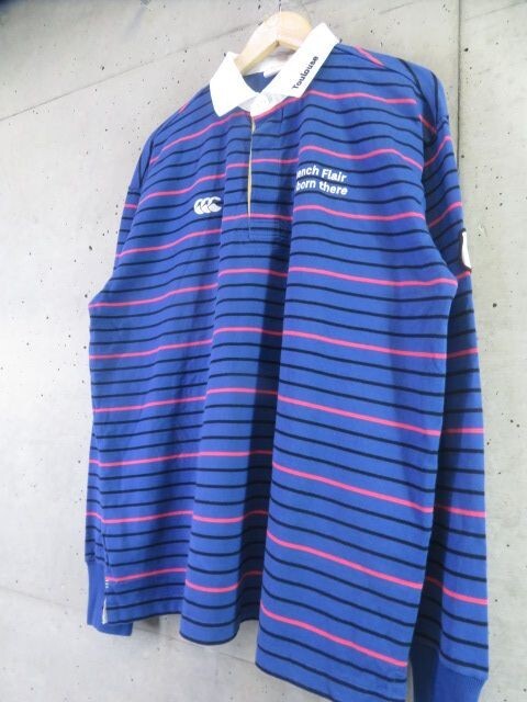0360b10◆良品です◆CANTERBURY カンタベリー ボーダー柄 長袖ラガーシャツ XL/ポロシャツ/ラグビー/ワールドカップ/ジャージ/ジャケット