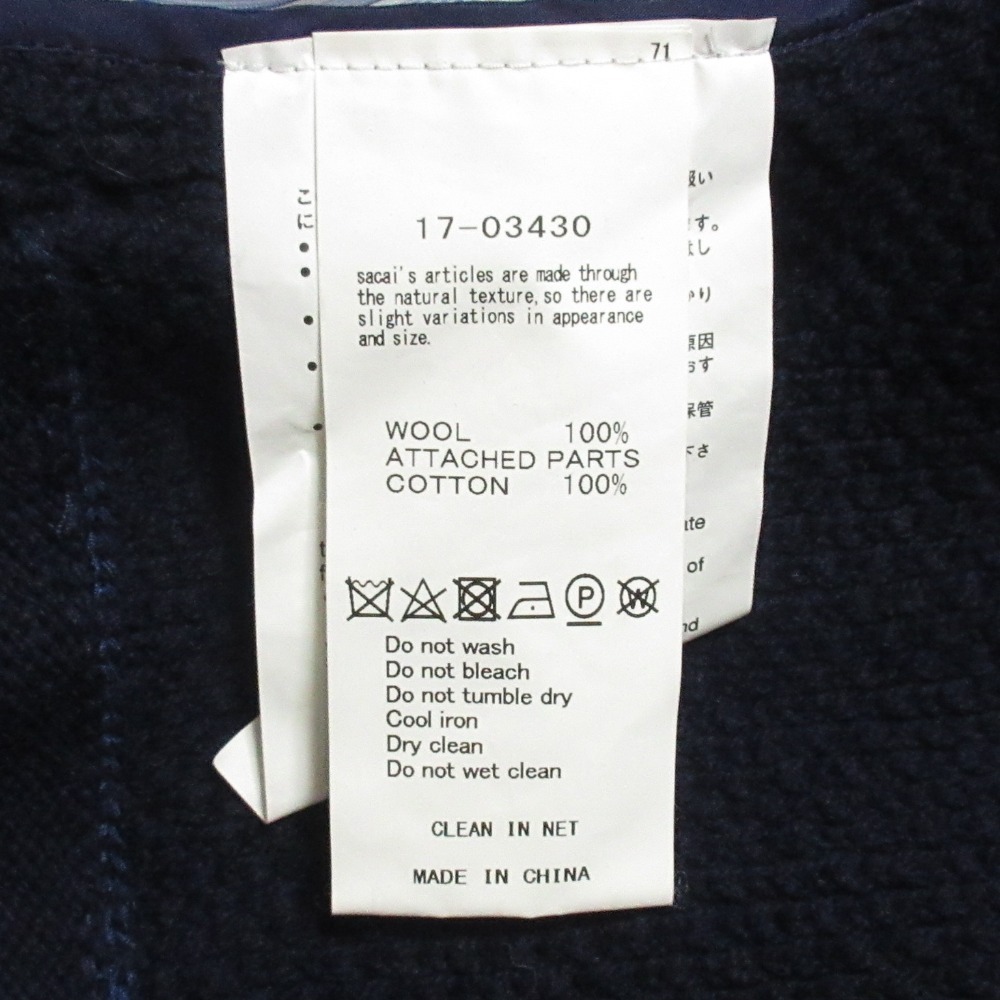 良品 sacai サカイ テールカット ケーブルニットドッキングシャツ ブラウス 2 ネイビー×ブルー