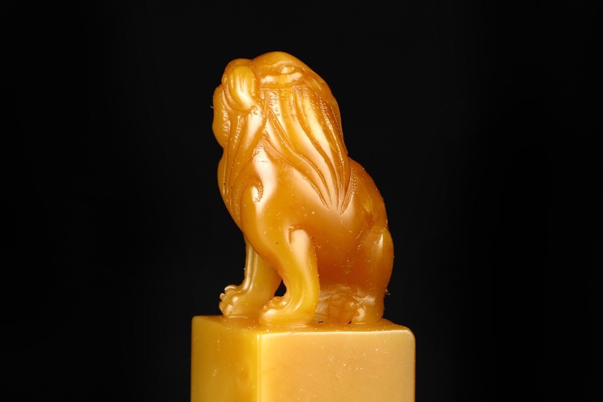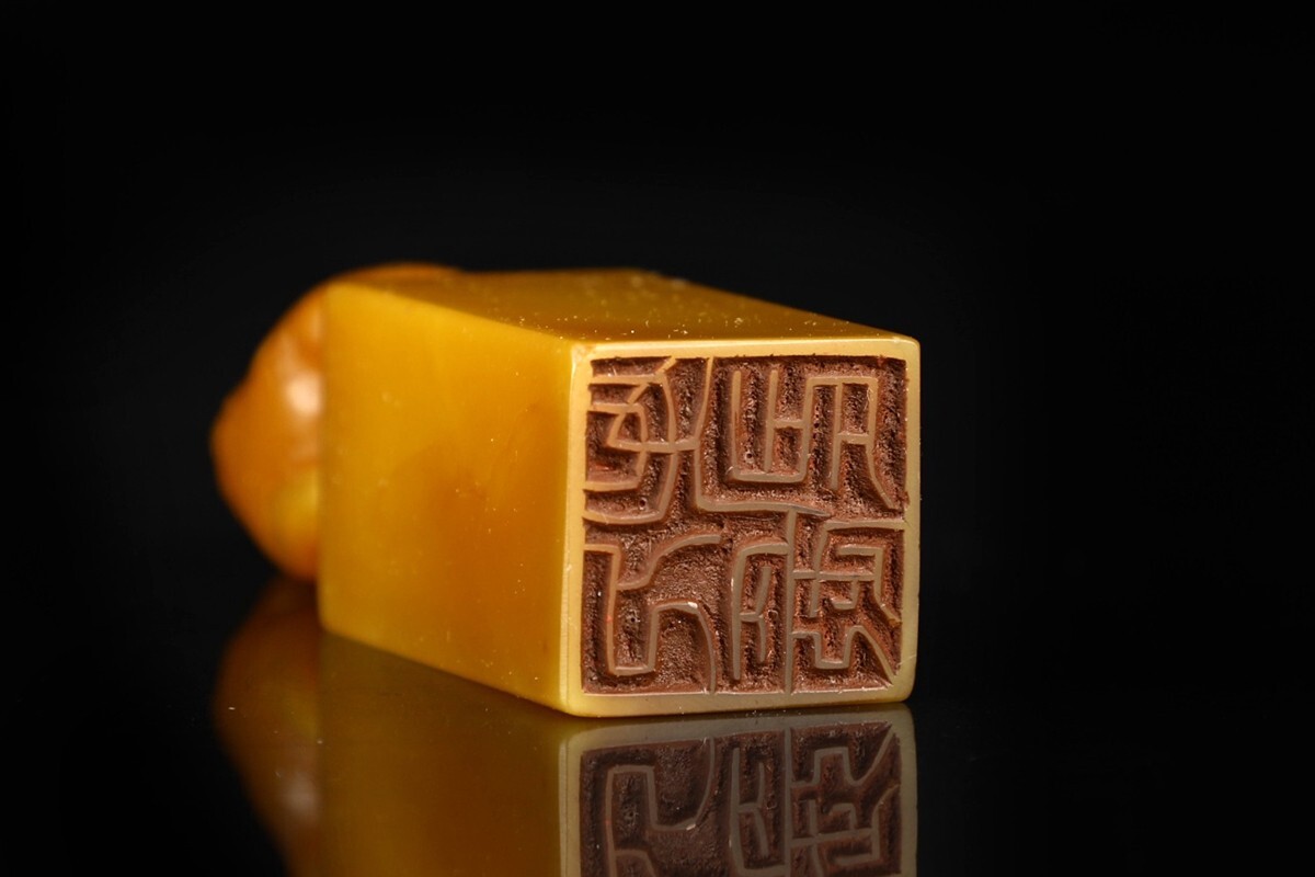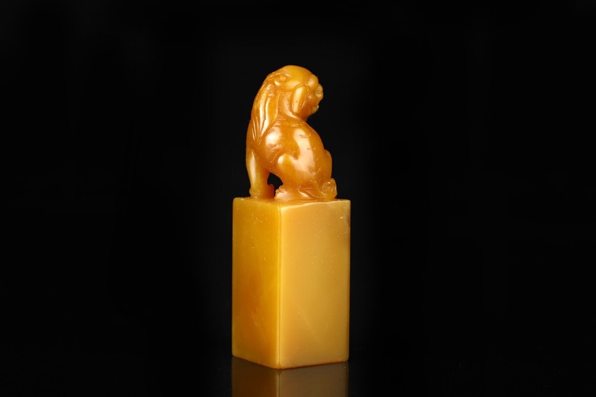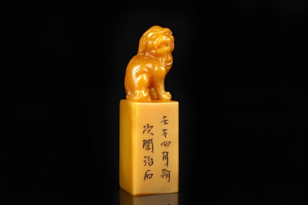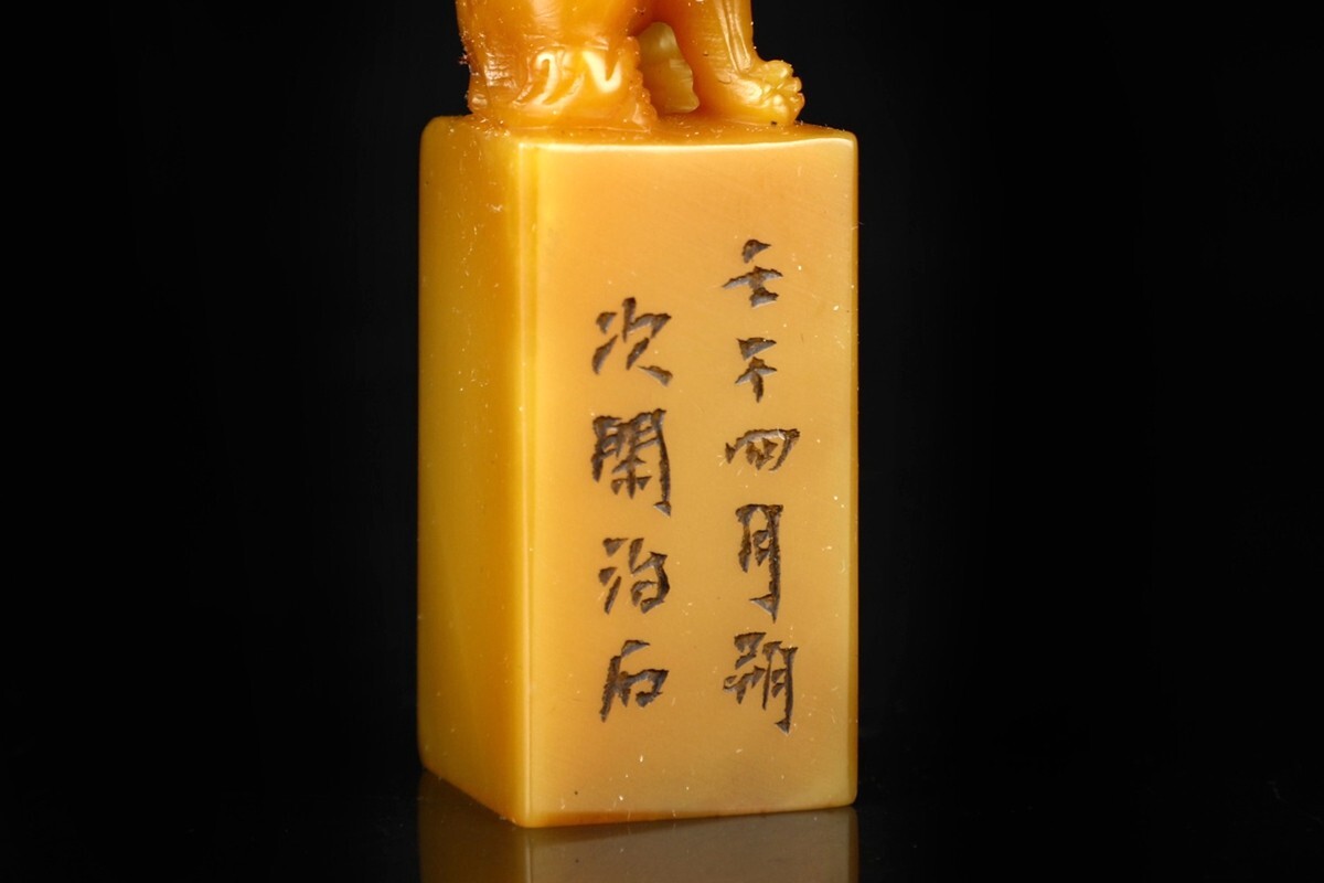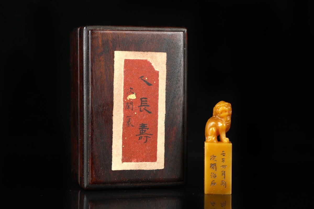 「清 次閑作 老寿山石 田黄石彫り (人長壽) 瑞獣鈕印章」極細工 擺件 古賞物 中国古美術 旧蔵出