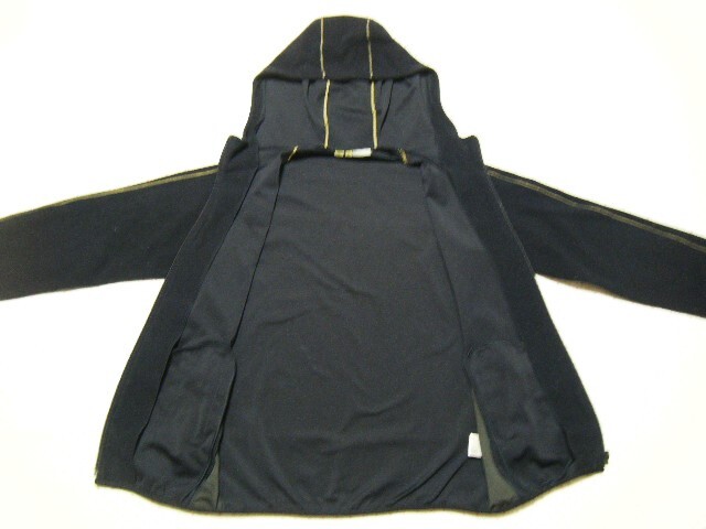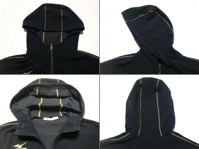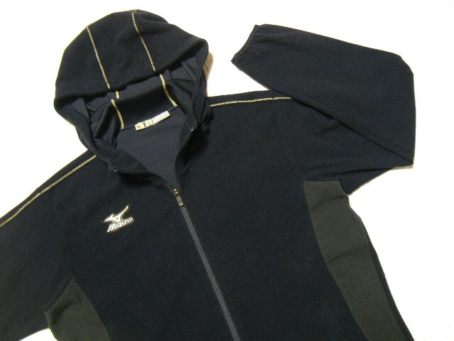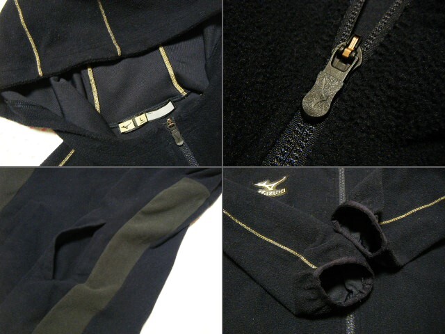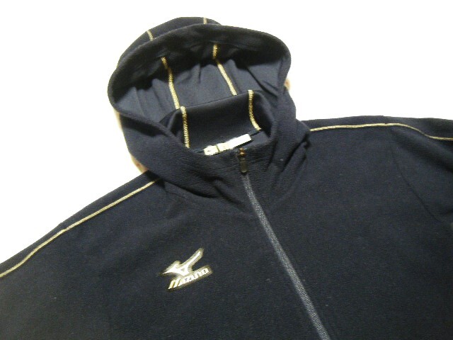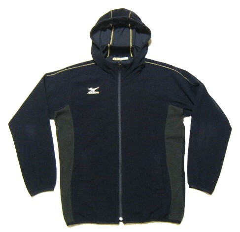 本体は軽量ポリエステル素材。    通気性のある肌ざわりのよいストレッチフリース生地で、肌面はツルっとしたサテン調の生地加工を施し、吸汗速乾機能を併せ持った野球用防寒フーテッドジャケット・フード付きフルジップジャケット・パーカー。   フルオープンモデル。   @ ゴールドのステッチラインと身頃サイドのカラー切り替えがアクセント。   袖口、裾口は冷風の侵入を防ぐバインダー仕様。      右胸上部のロゴマークは樹脂貼り付け。    フードは着脱不可。    モデル名 ミズノ グローバルエリート ストレッチフリース パーカー     表記カラー ネイビー × チャコールグレー