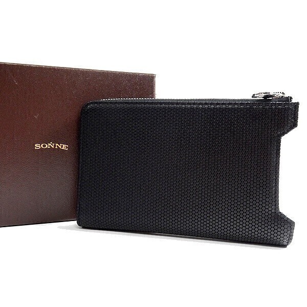 SONNE ゾンネ 新品 CHIP STAR メタリック型押しレザー 牛革 L字ジップ マルチウォレット 財布 小銭入れ付き SOI002A BLACK ▲008▼bus012so | |||
