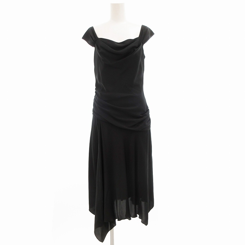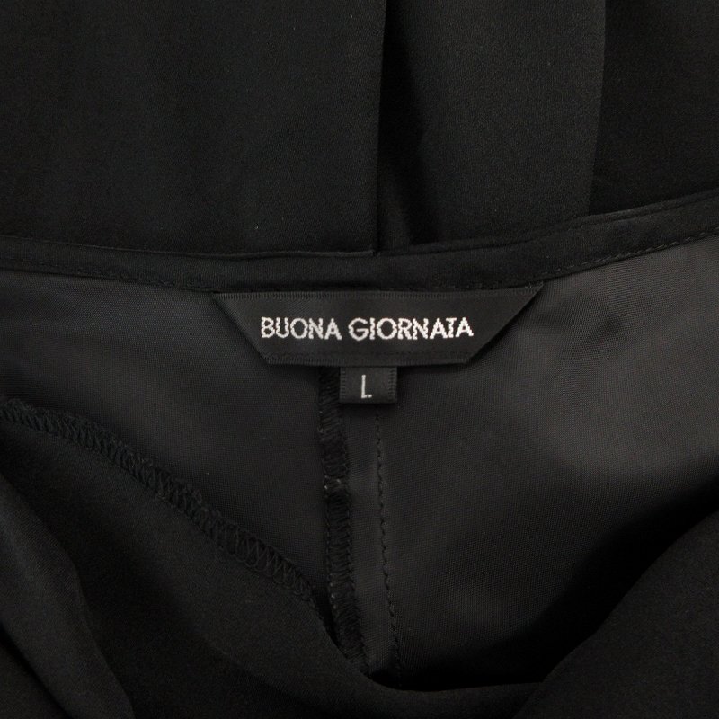 ボナジョルナータ BUONA GIORNATA ワンピース ノースリーブ アシメ マキシ ロング ドレープ L 黒 ブラック /OU レディース