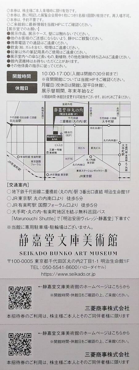 三菱商事の株主優待「静嘉堂文庫美術館」展覧会・無料ご招待券2名分▼