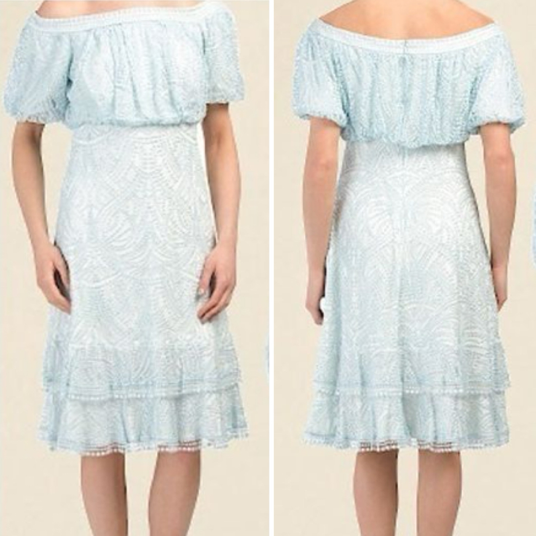 TADASHI SHOJI タダシショージ オフショルドレス パーティードレス フォーマルワンピース レース フィット&フレア Aライン 総刺繍 エンブロイダリー パフスリーブ 半袖