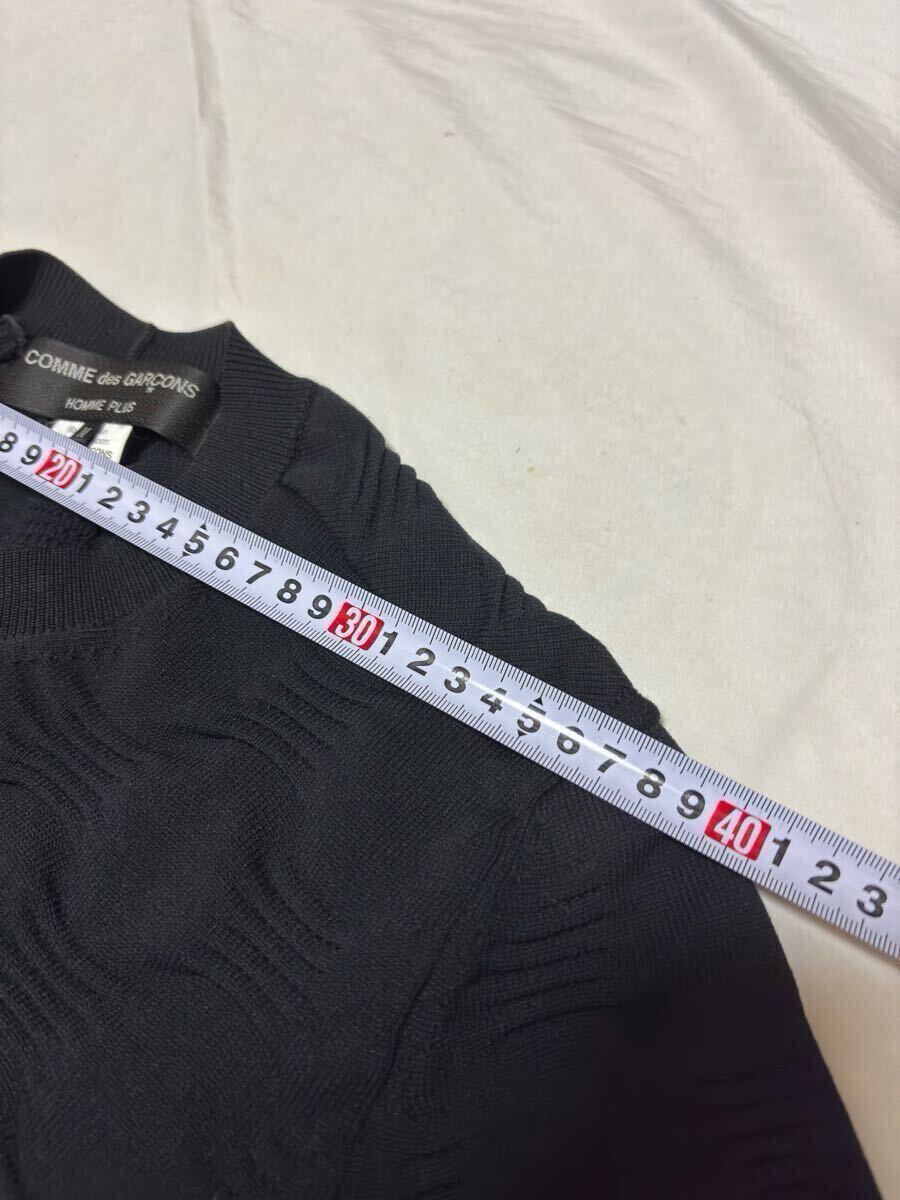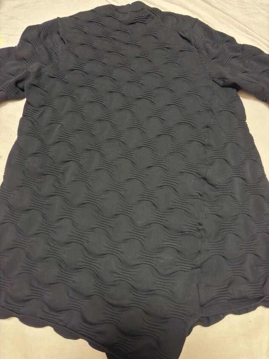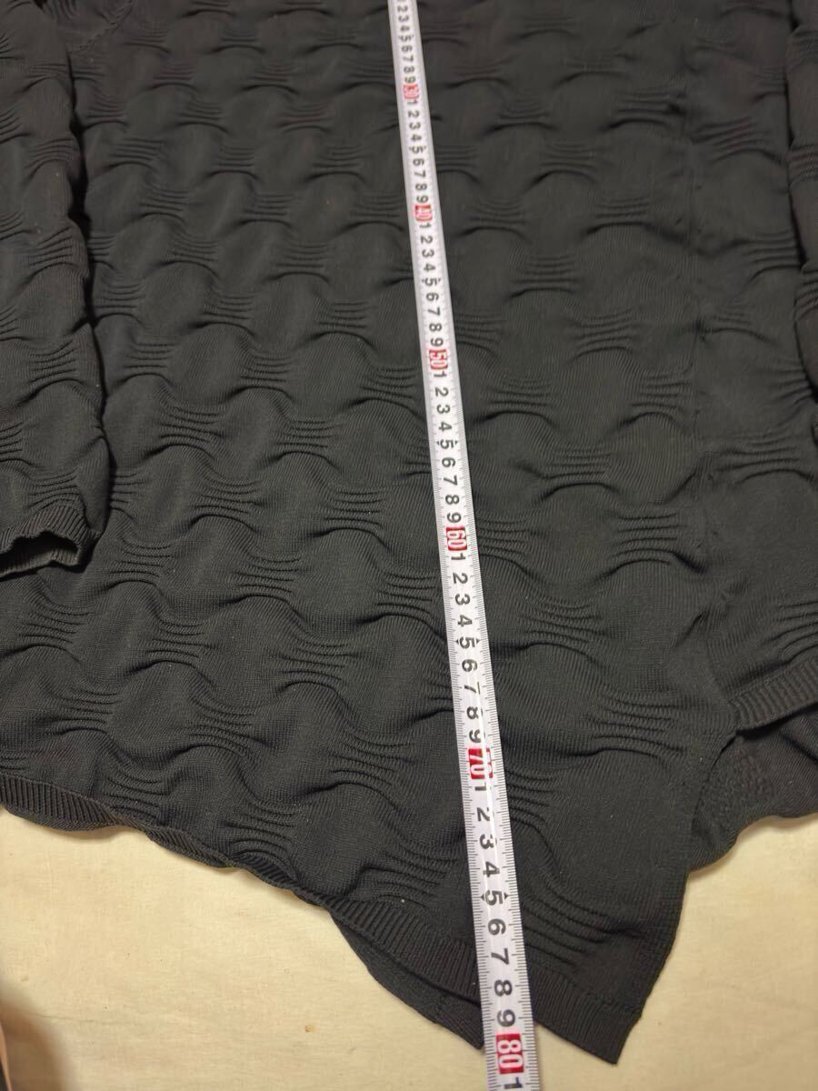 凹凸感を出す加工を施し歪みや独特の風合いに仕上たニットになりますが、スウェットのような素材感です。ブラックはあまり出てこないので、ぜひお早めにご検討ください。
