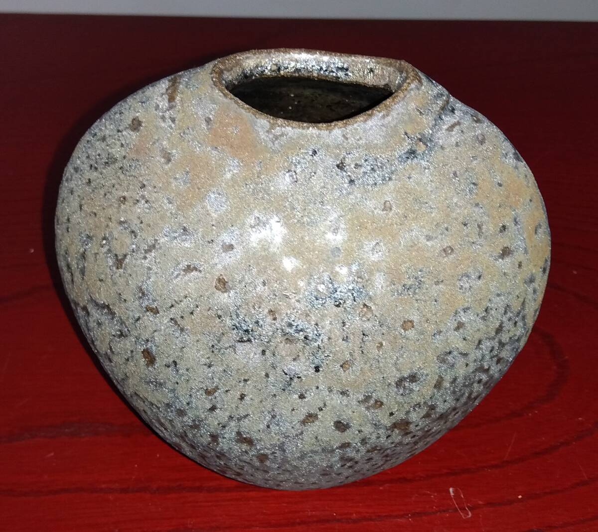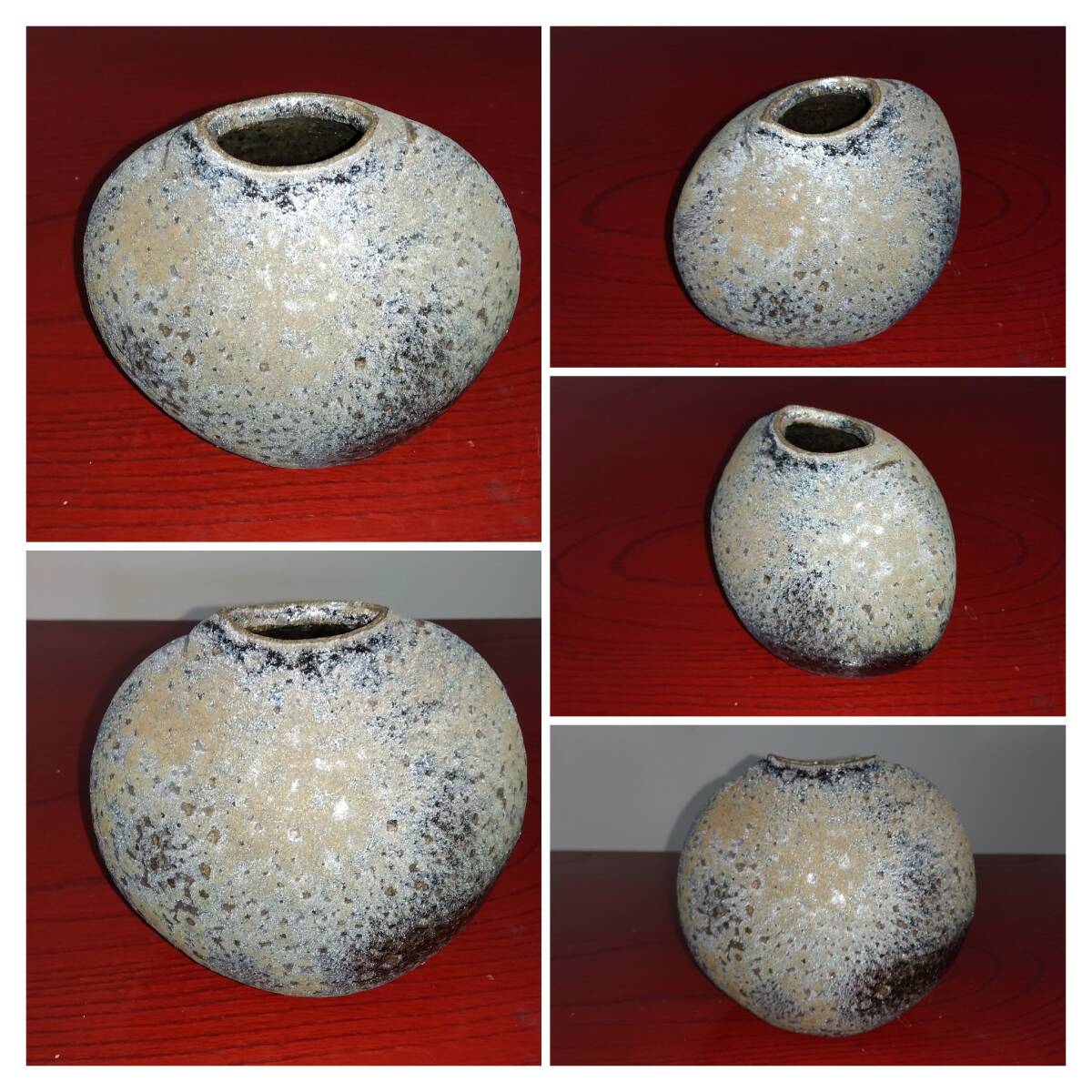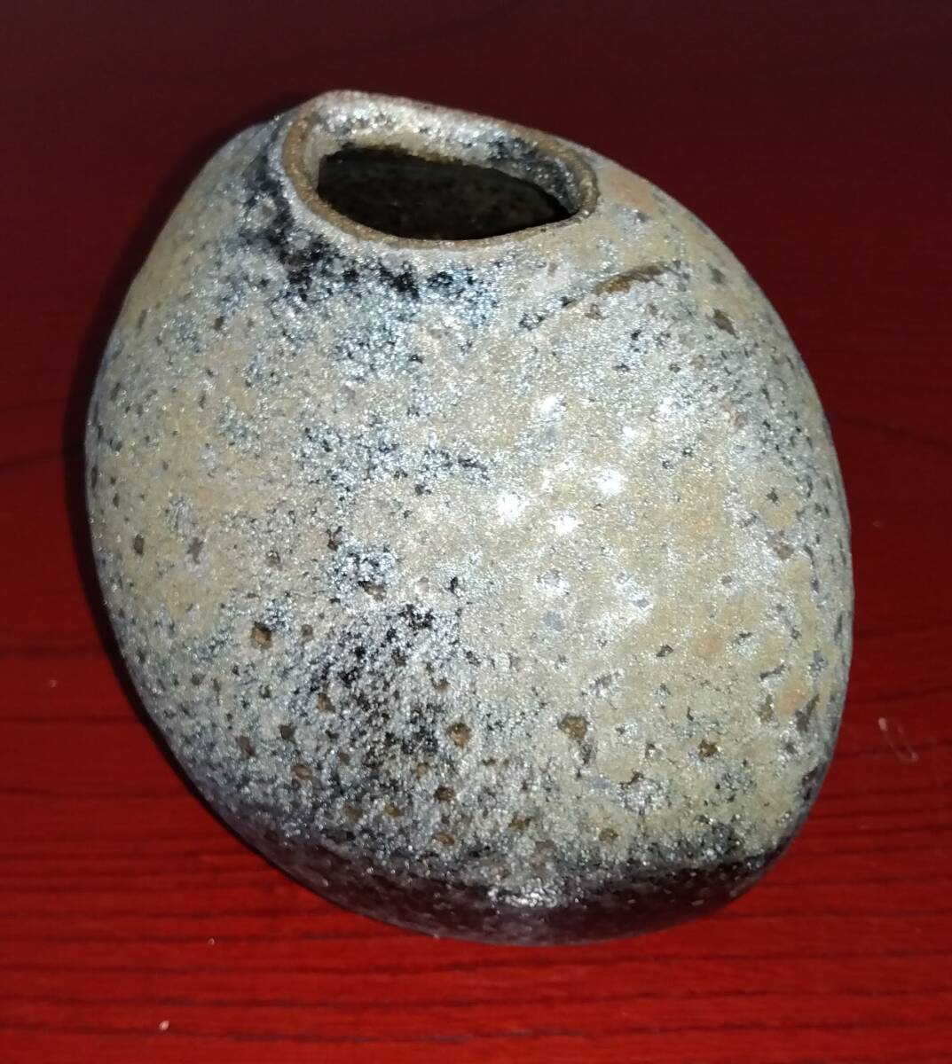 灰釉に呈色剤として鉄化合物を加えた「高火度釉」鉄砂釉(てっしゃゆう)は 所々やや赤みを帯びた表面と共に見事な黒い結晶を 布地網目紋様全体に浮きだたせえも言えぬ風趣を醸し出しています。 いけられる一輪の花をより一層鮮やかな色彩そして繊細孤高の美しさへと心和み癒してくれるでしょう。 師の卓越した力強いヘラ使い面取りわざが見事な造形美へ昇華された逸品です。日常生活雑器とは言え師の斬新なデザイン造形観審美眼が垣間見られる逸品をご堪能下さい. サイズ:口径40/55mm全高120mm厚み幅85mm全幅125mm包装:クラフトボックスプチプチ包装