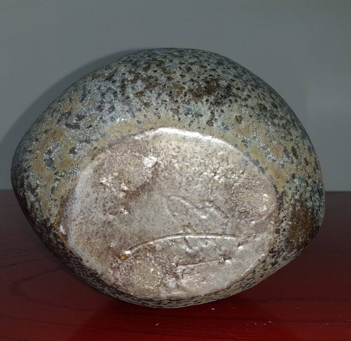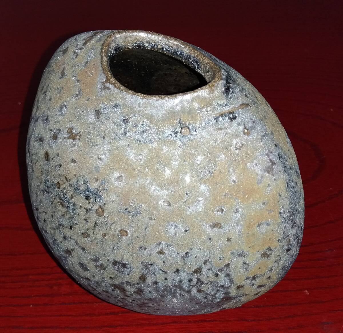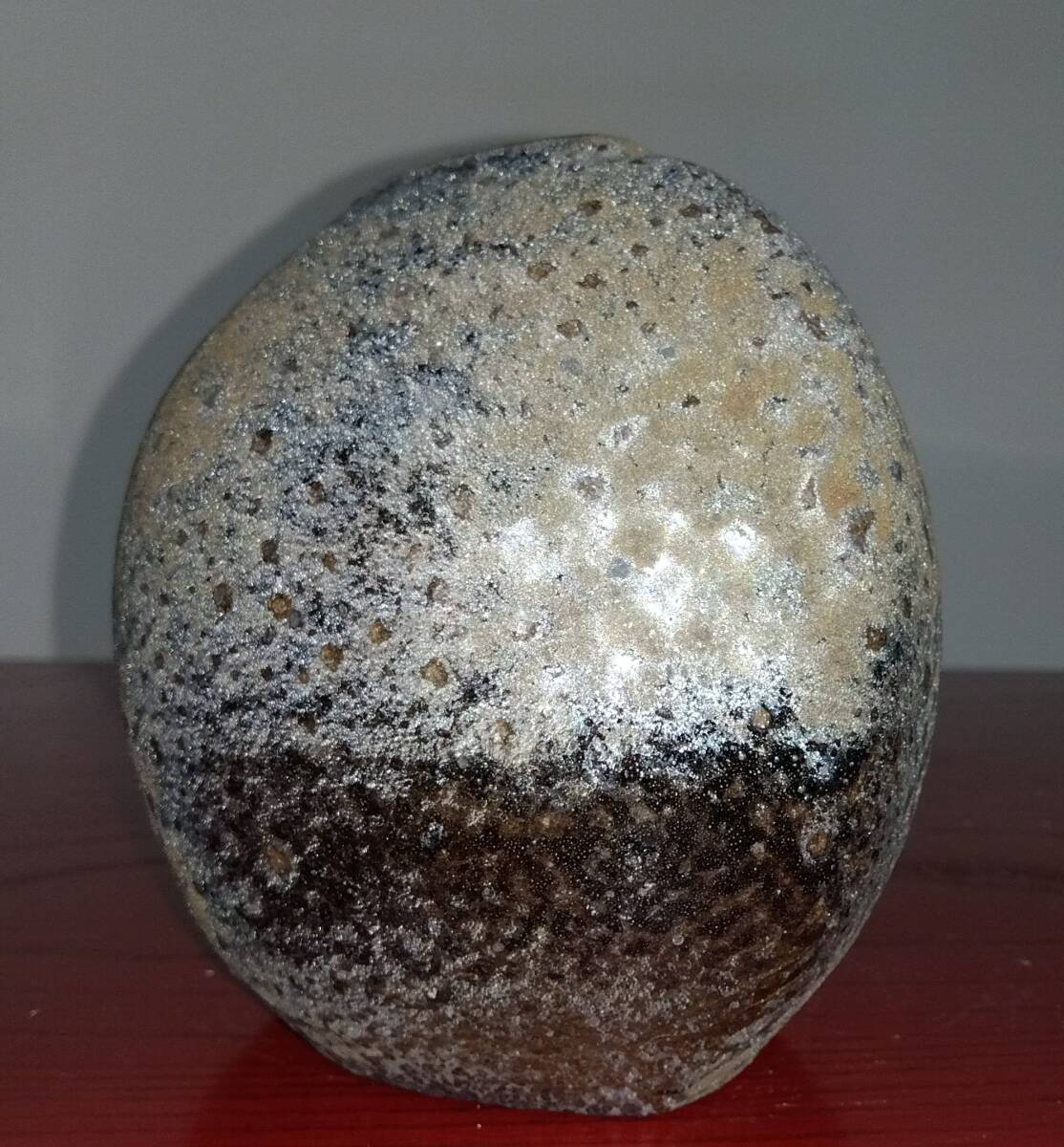 越前焼の名工 福嶋伸彦 【ほたる窯】   鉄釉壁掛け還元窯変美涙型 一輪挿し花器
