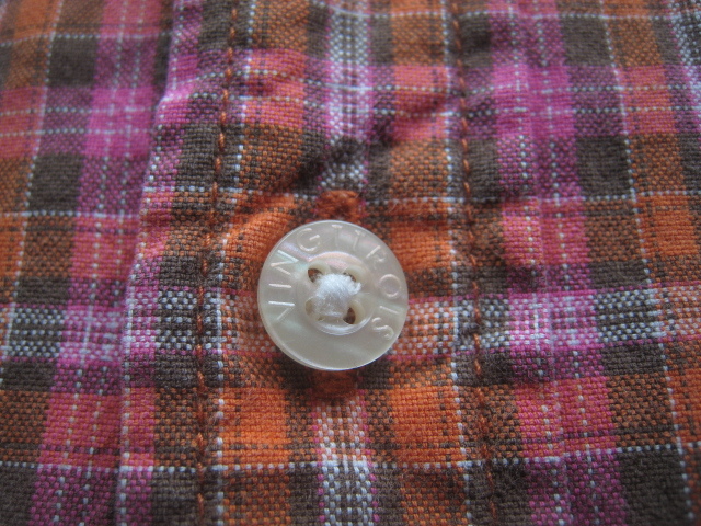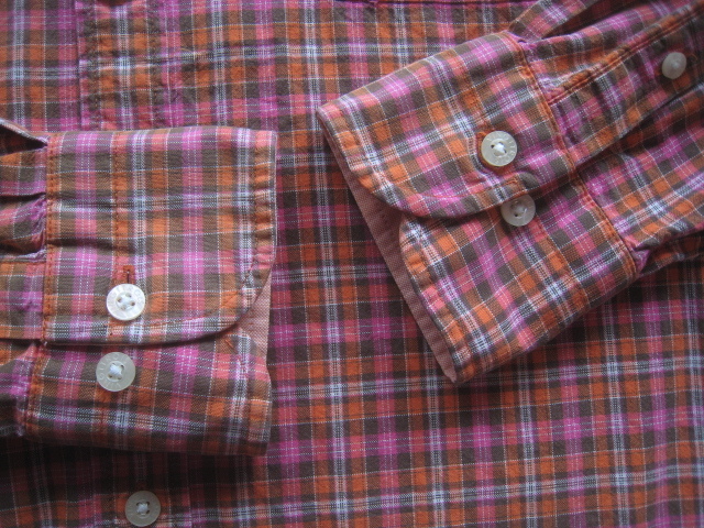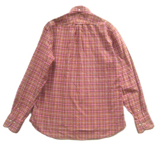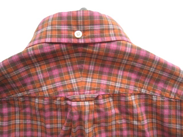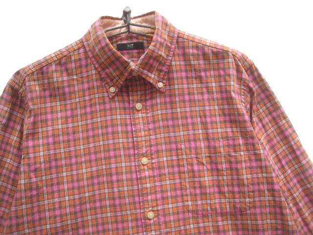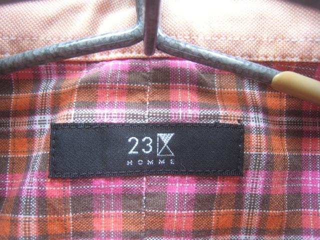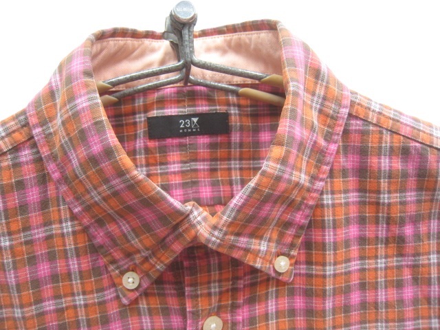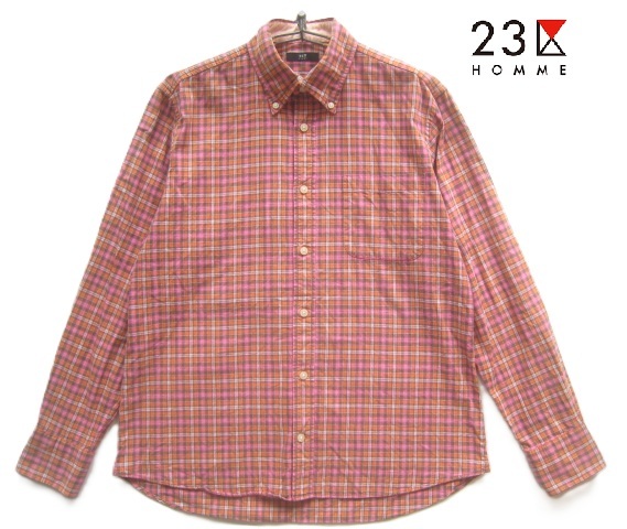 美品!!23区オム 23区HOMME*美シルエット 胸ポケット付き チェック柄ボタンダウンシャツ 48 実寸M 橙×カーキ×ピンク×白 オンワード樫山