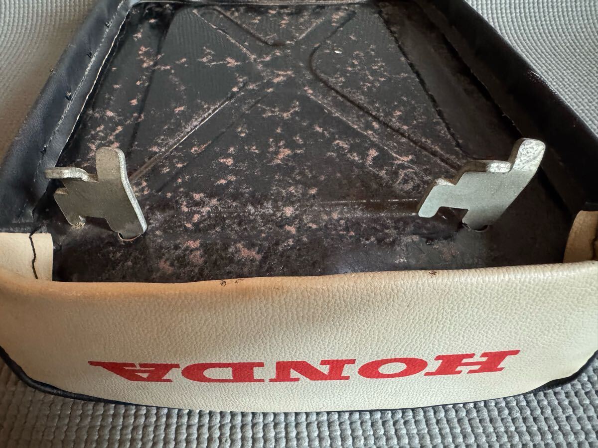 ☆6 倉庫片付け品 新品当時物在庫品 HONDA 純正 ホンダ C100、105用60s当時物で購入した タンデムシート 詳しい事わかりません 画像参考。 状態、未使用品ですが保管中による汚れ、サビ、イタミ、他に見落とし等が有るかも 商品画像参考判断にてお願い致します。