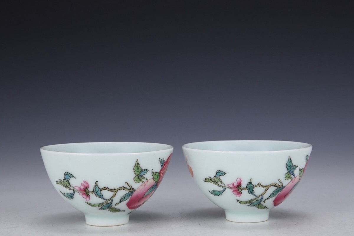 清代 雍正年製 陶磁器 粉彩壽桃紋 杯一対【仁】染付 置物擺件 古賞物 古美術 中国古玩 蔵出