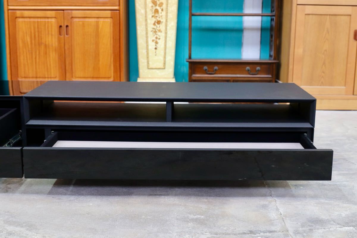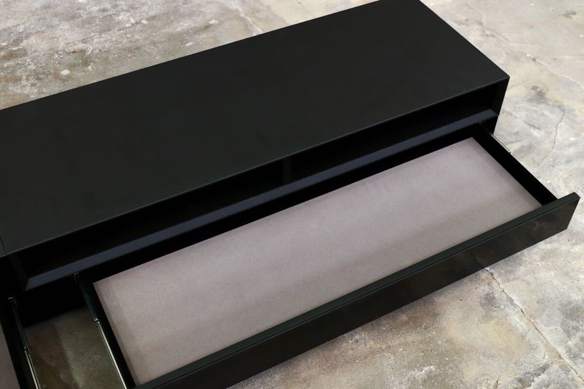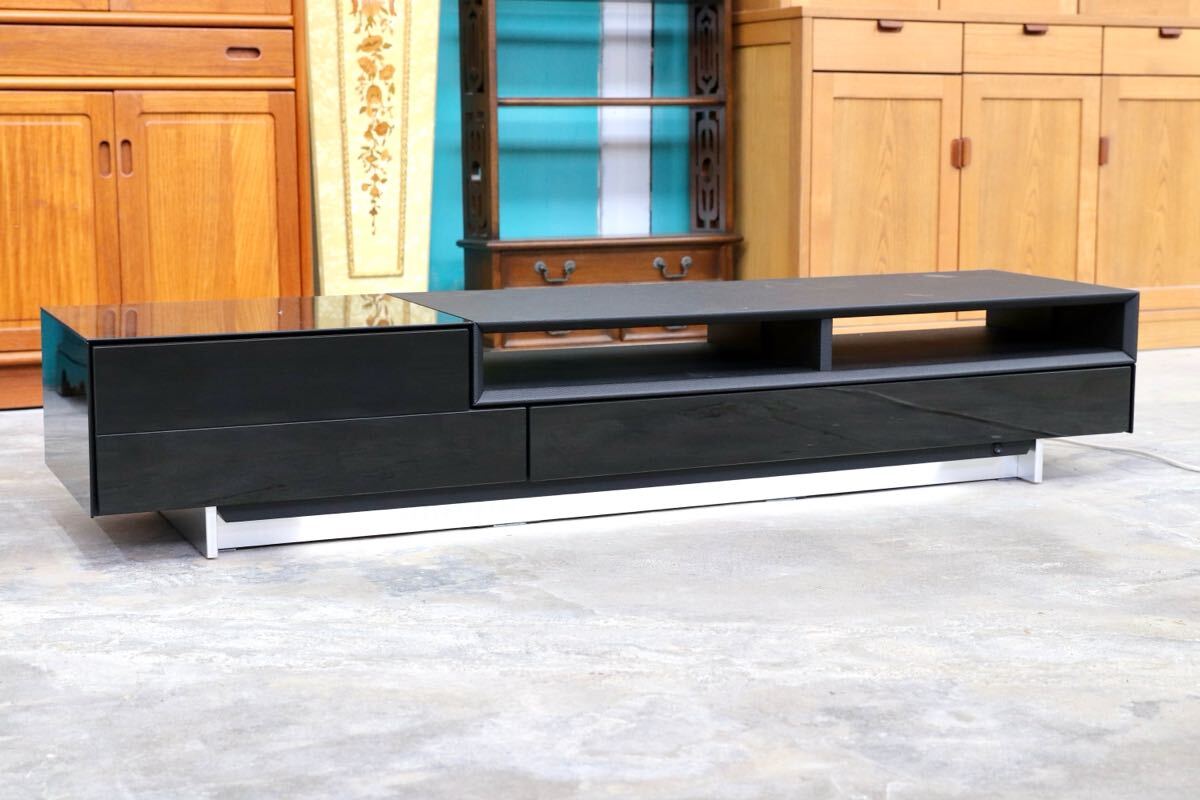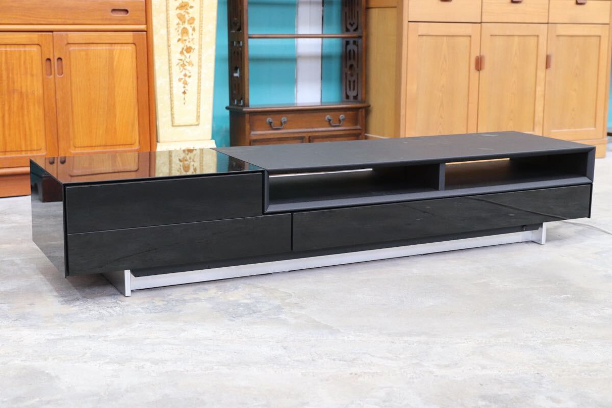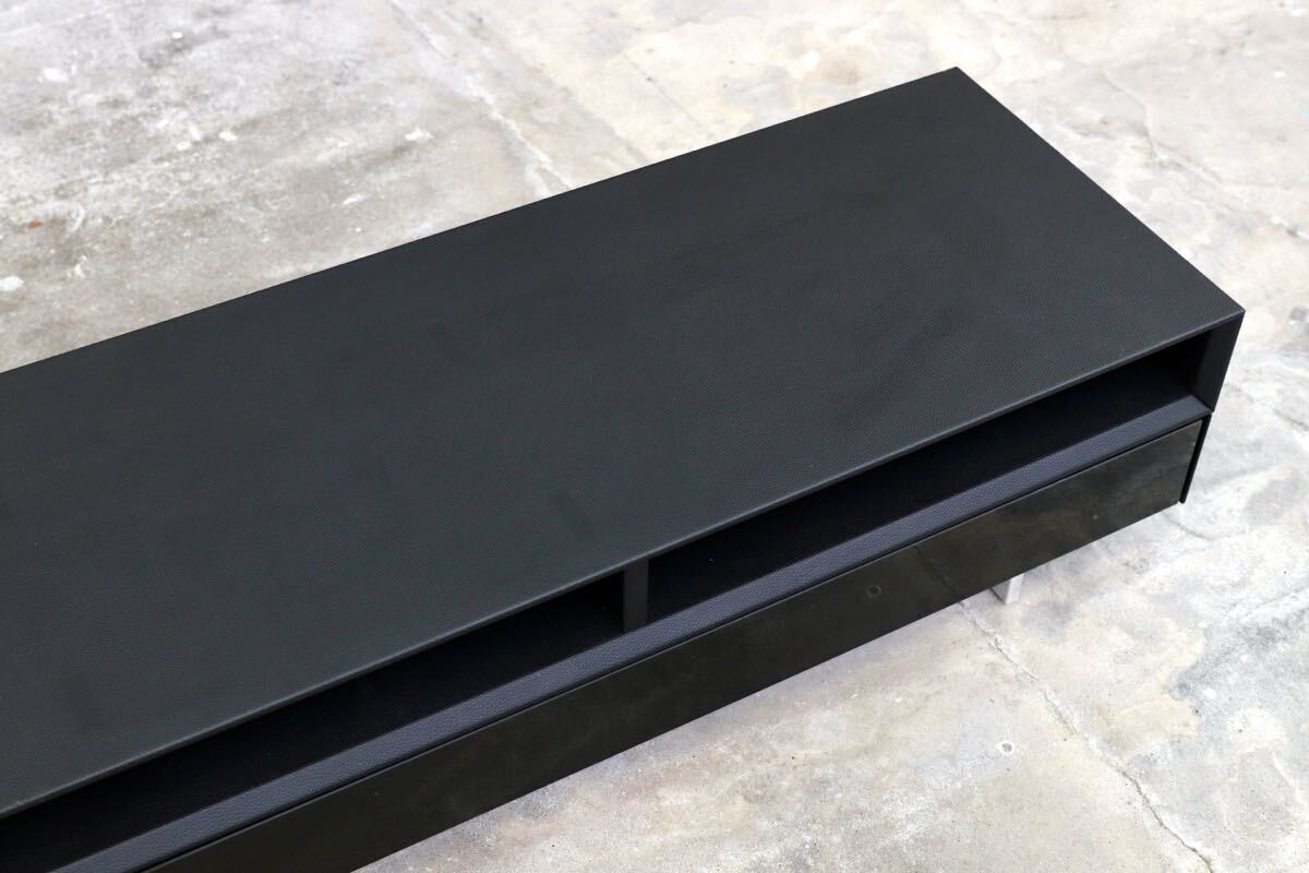 レザー張りと鏡面仕様の組み合わせがモダンな印象を与えます。