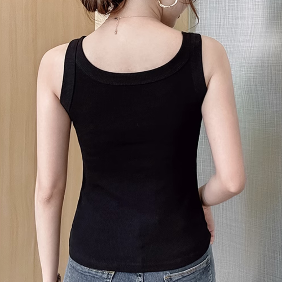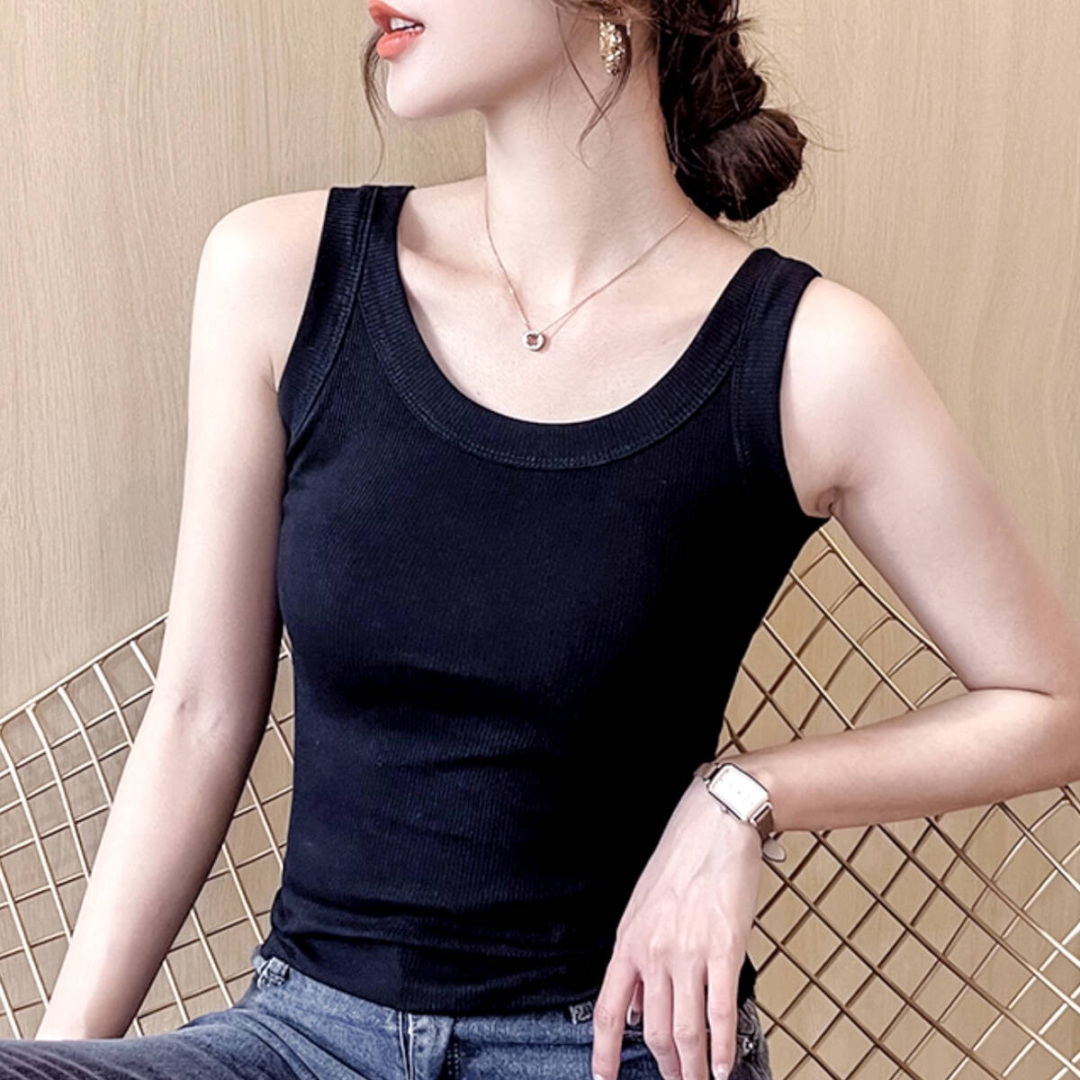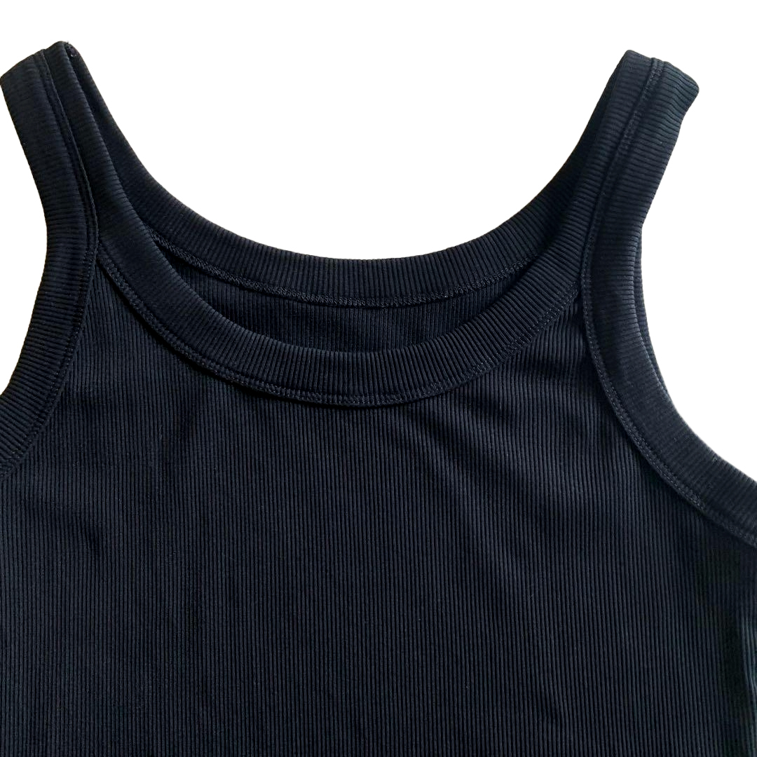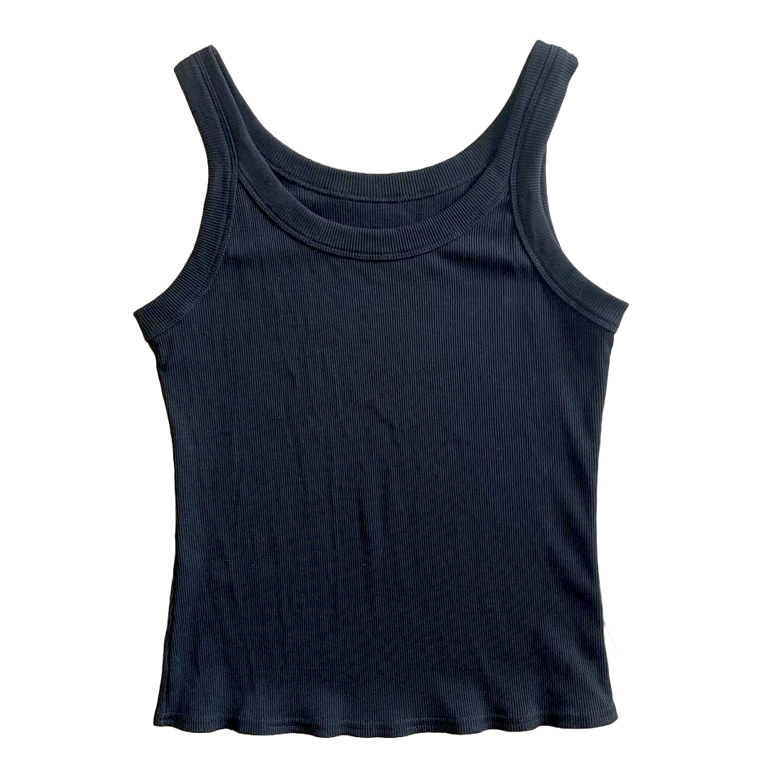 古着 タンクトップ キャミソール インナー Uネック 黒 無地 リブ編み ニット free123