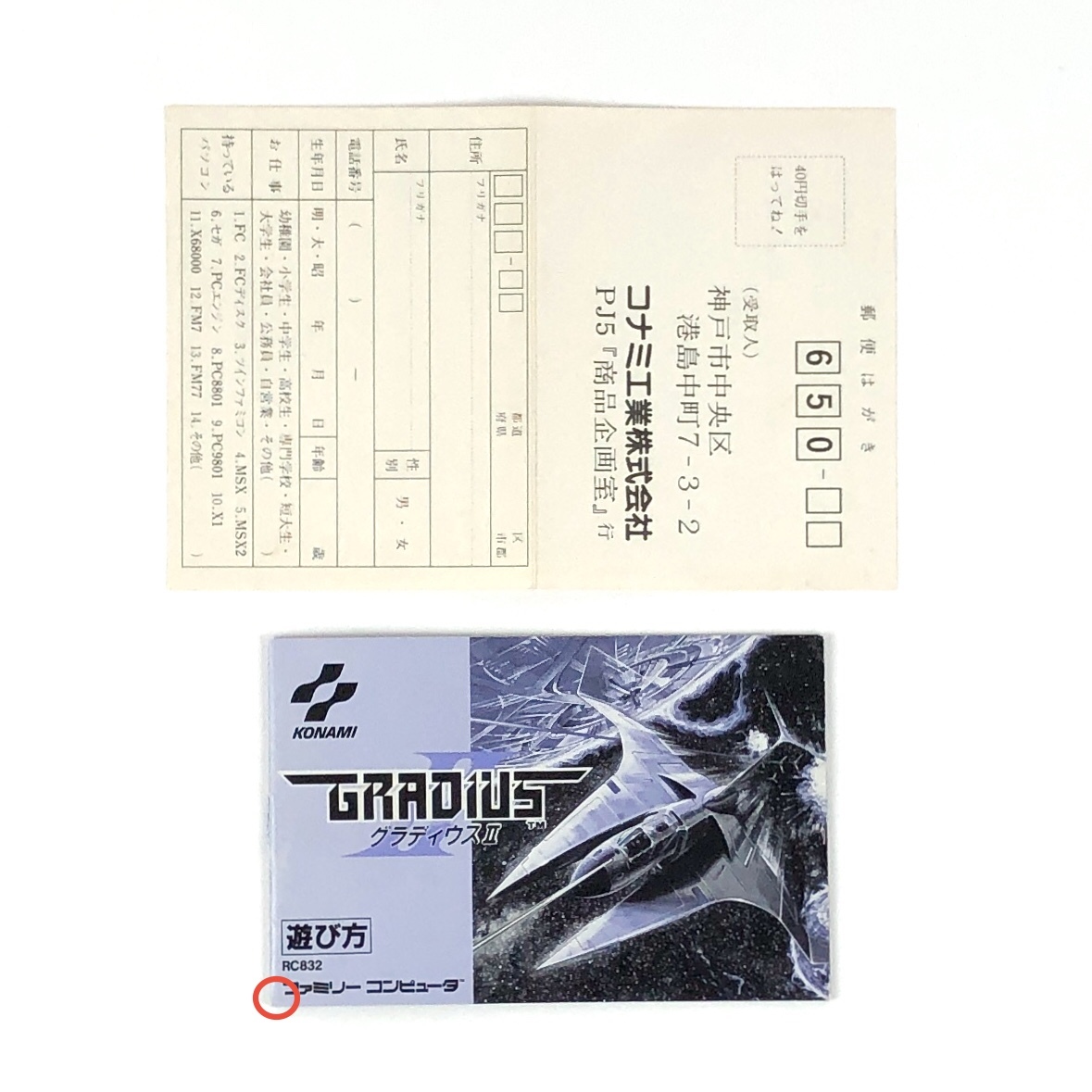 【送料無料】 ファミコン グラディウスⅡ 箱説・ハガキ付き 痛みあり 動作確認済み コナミ Nintendo Famicom Gradius Ⅱ CIB Tested Konami