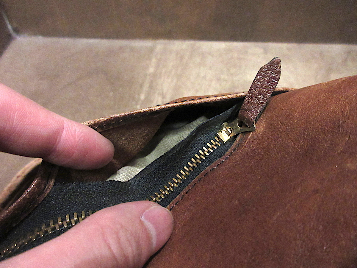 全体的に傷や汚れあり、ジッパーの付け根が解れている箇所あり
