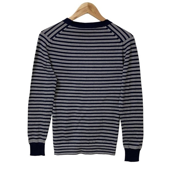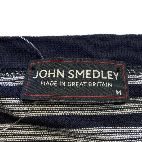 ジョンスメドレー JOHN SMEDLEY カーディガン サイズM - ダークネイビー×白 レディース 長袖/ボーダー トップス
