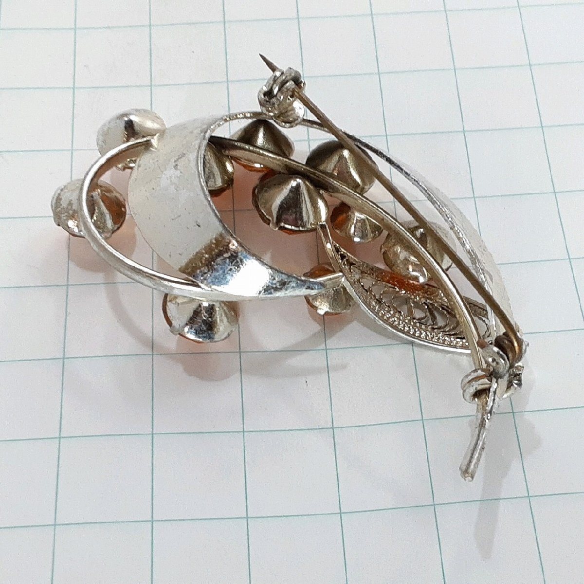 送料無料)ビンテージ☆オレンジラインストーン☆アンティーク ブローチ A30587