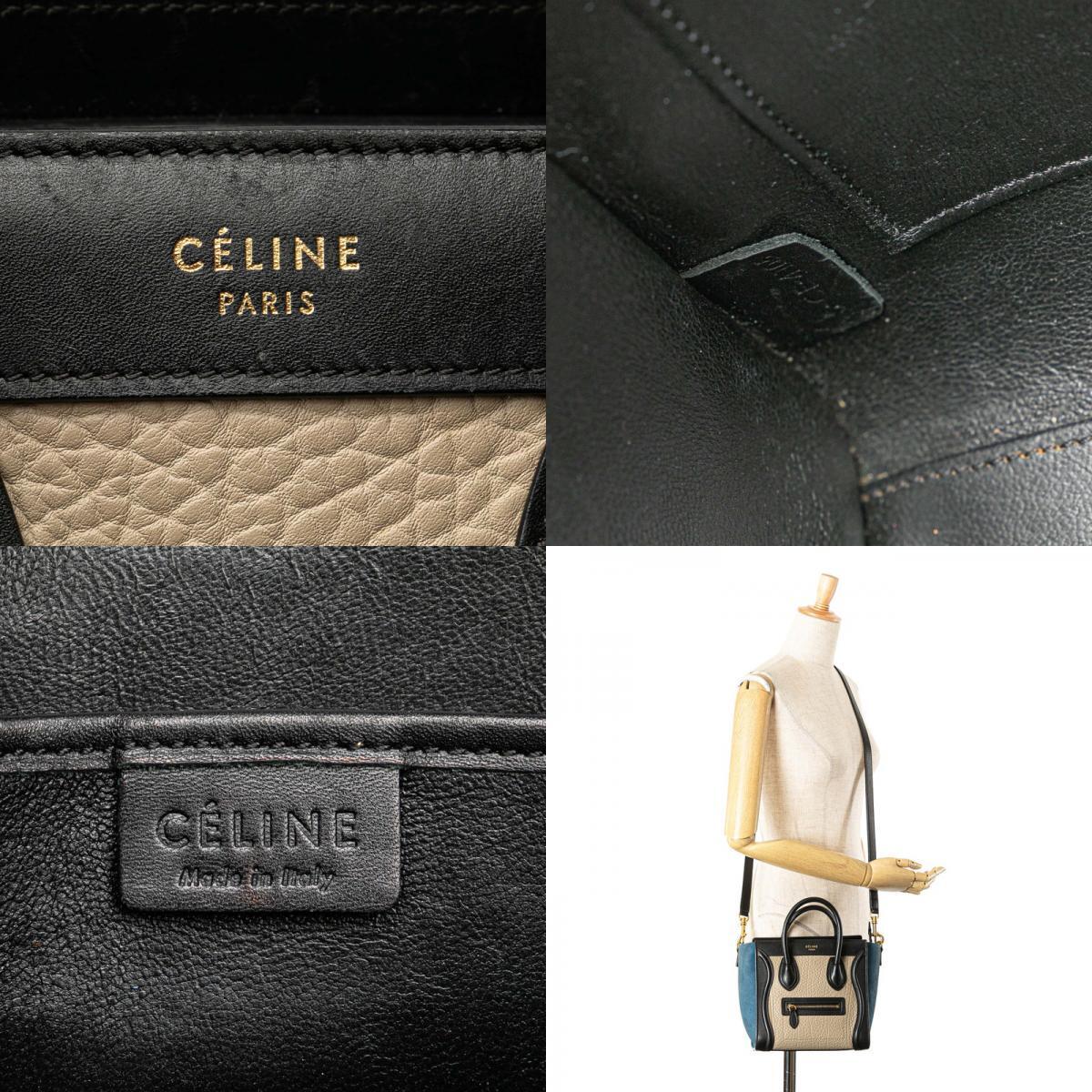 セリーヌ ラゲージ マイクロショッパー ハンドバッグ ショルダーバッグ 2WAY ネイビー グレージュ レザー スウェード CELINE 【中古】
