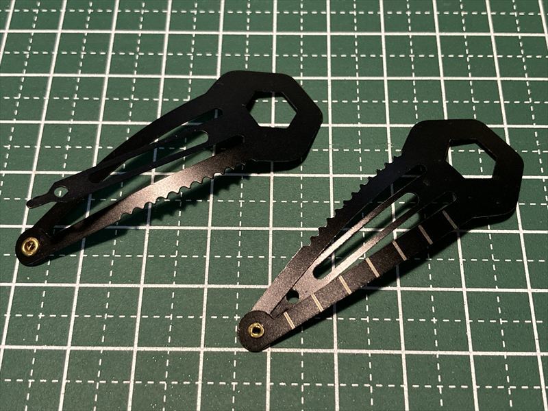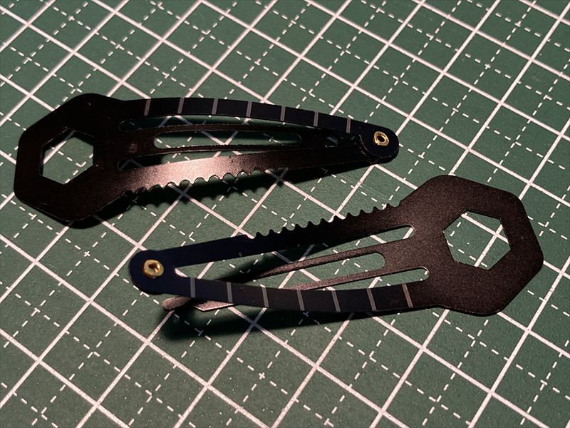 ヘアピンの形状に5つの機能を搭載(8mmレンチ、マイナスドライバー、定規、ノコギリ、カッター(トロリーコイン))。