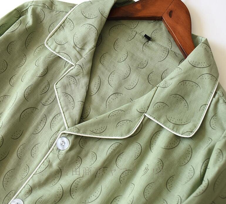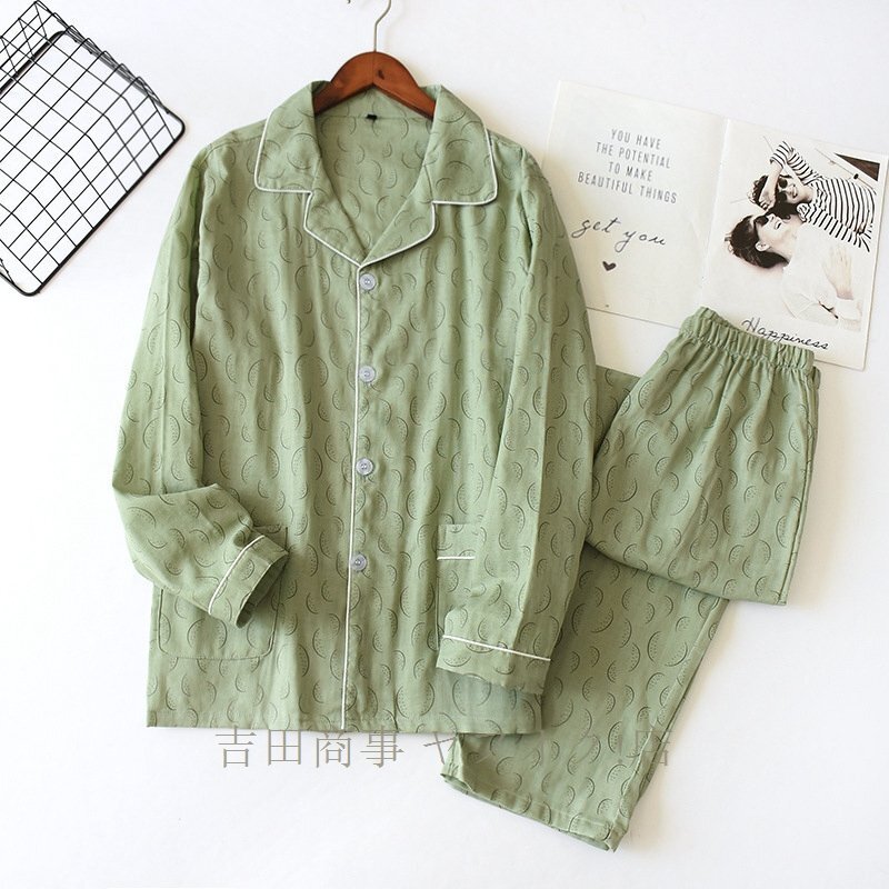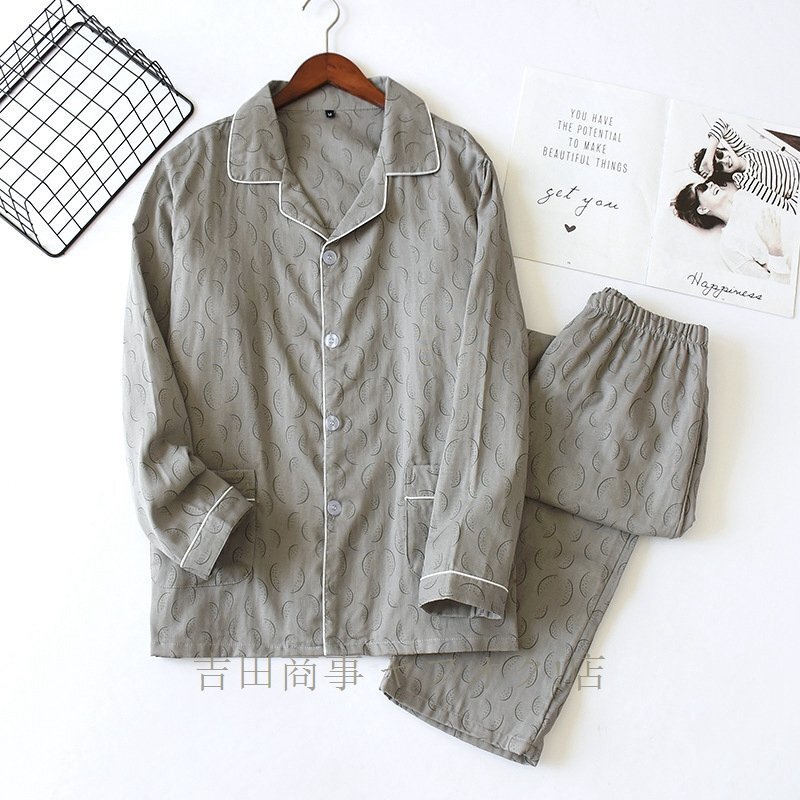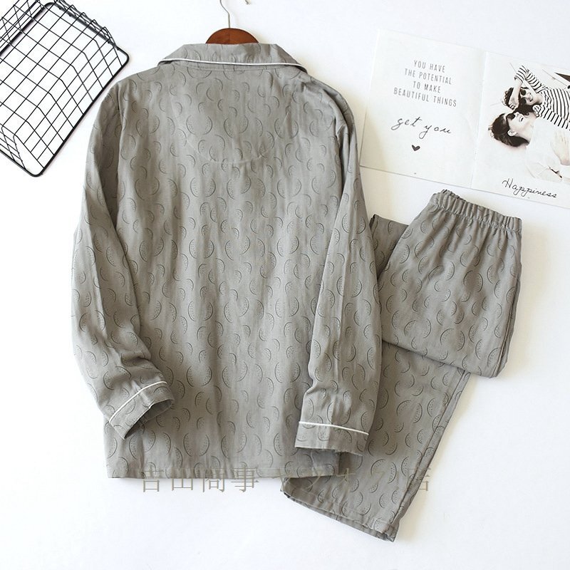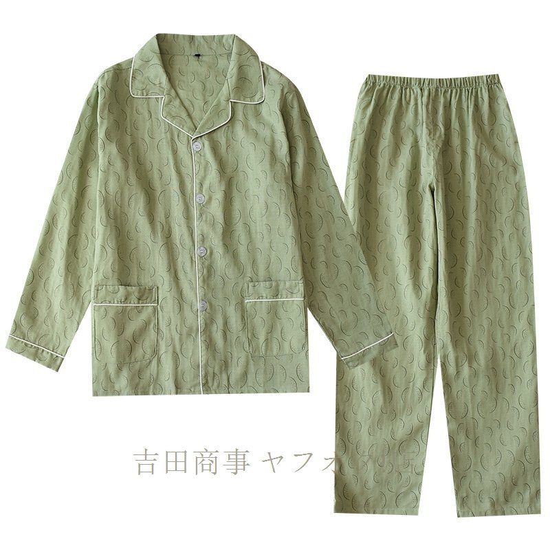 ★新品パジャマ ガーゼパジャマ 二重 メンズ ルームウェア 綿100%ガーゼ 前開き 長袖 長ズボン やさしい肌触り 部屋着 春夏秋冬 L