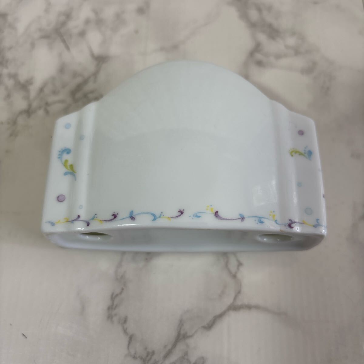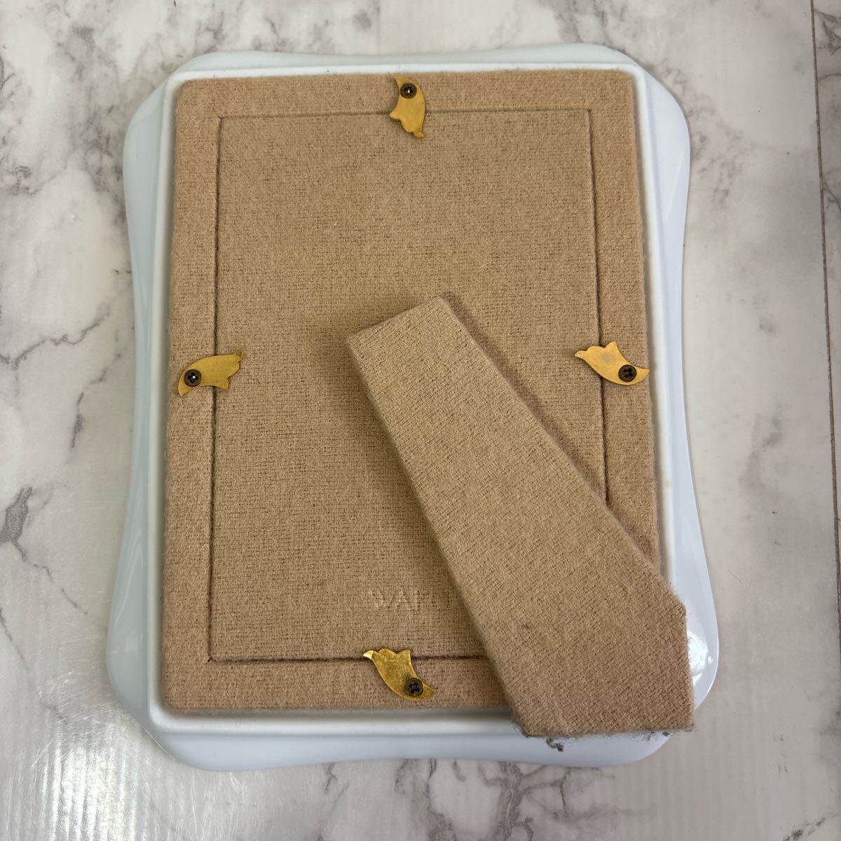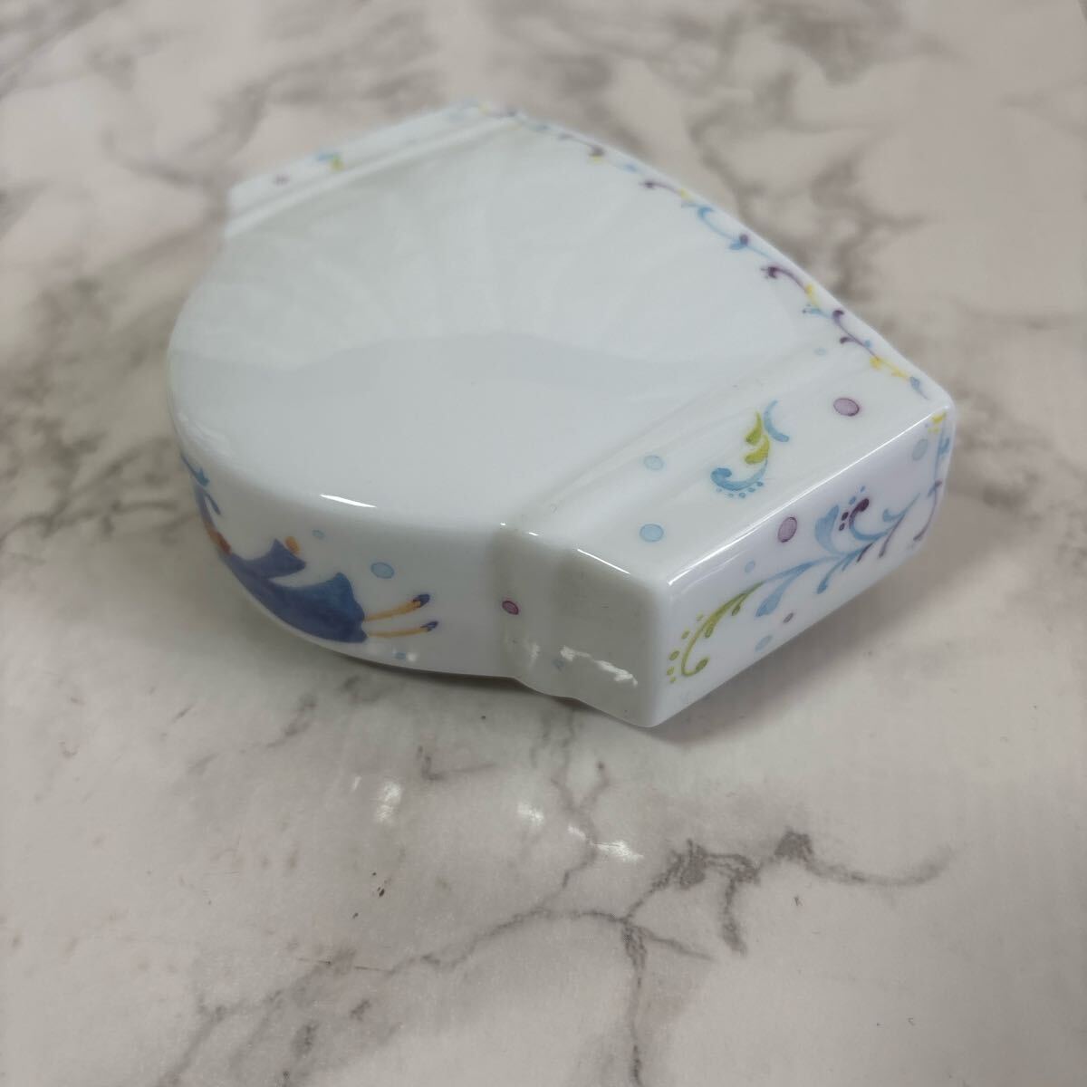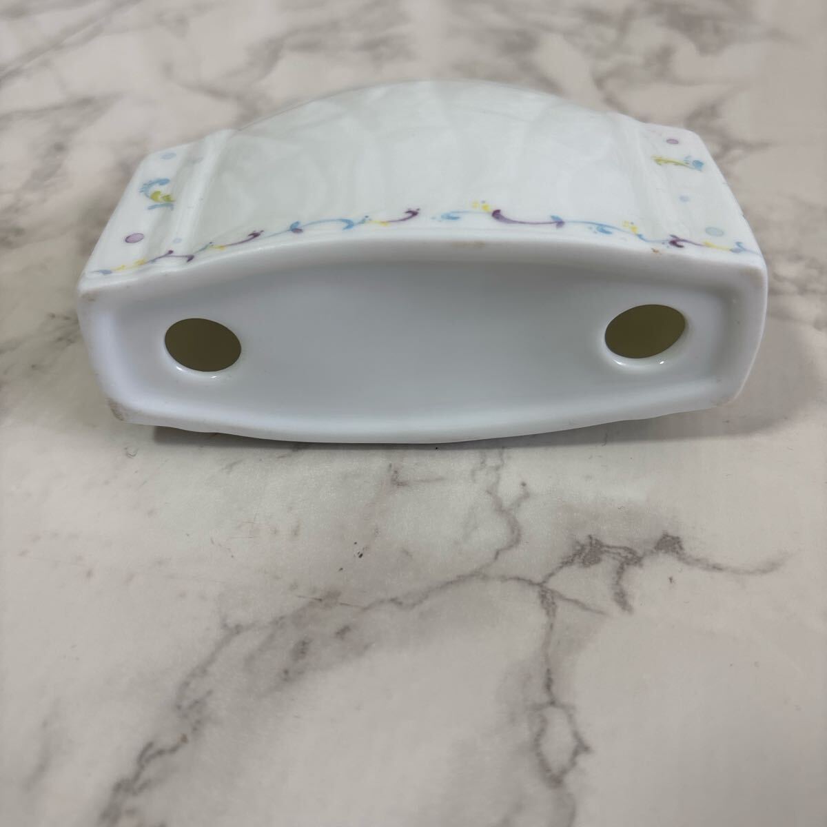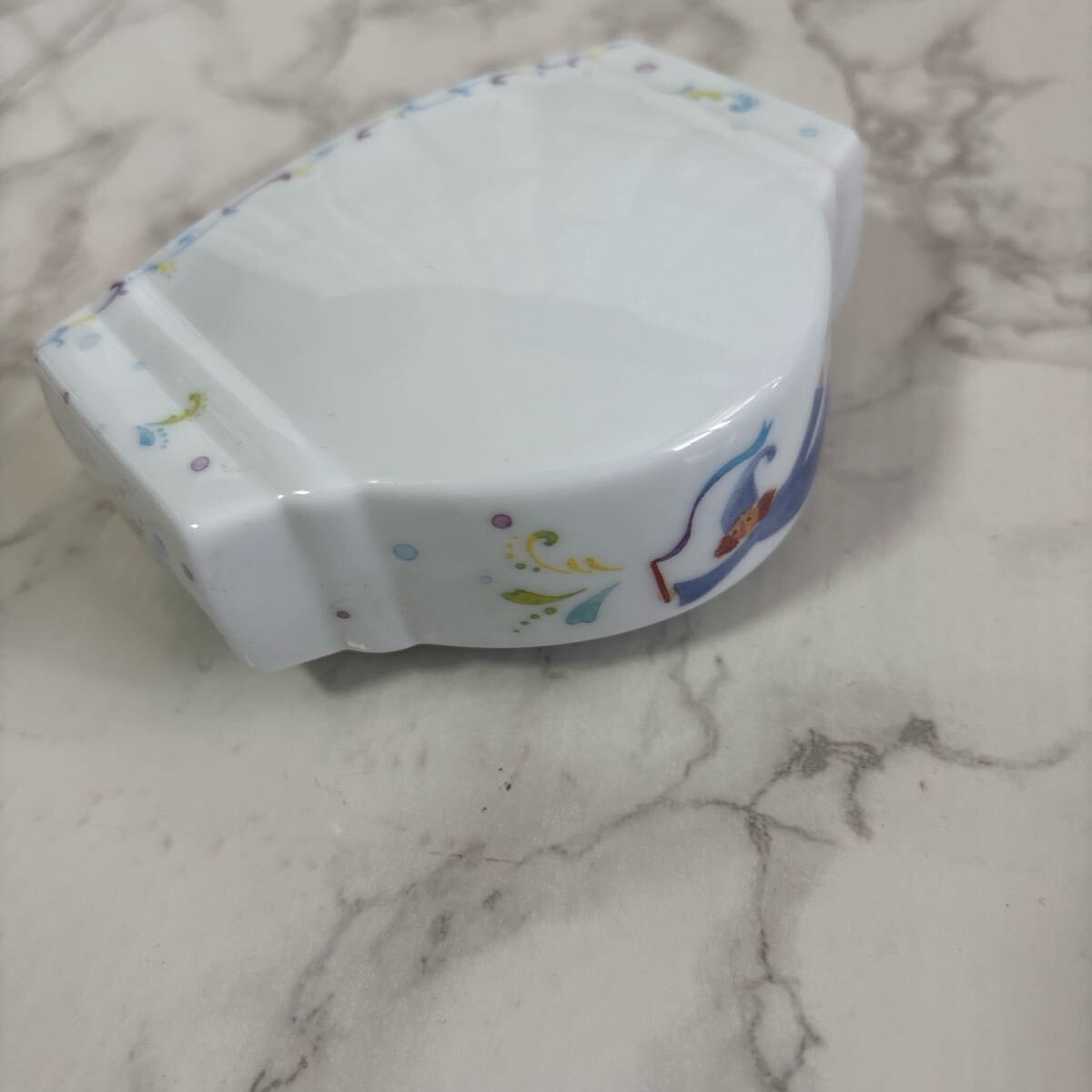 カラフルなイラストが施されたWAKO製の陶器フォトフレーム。