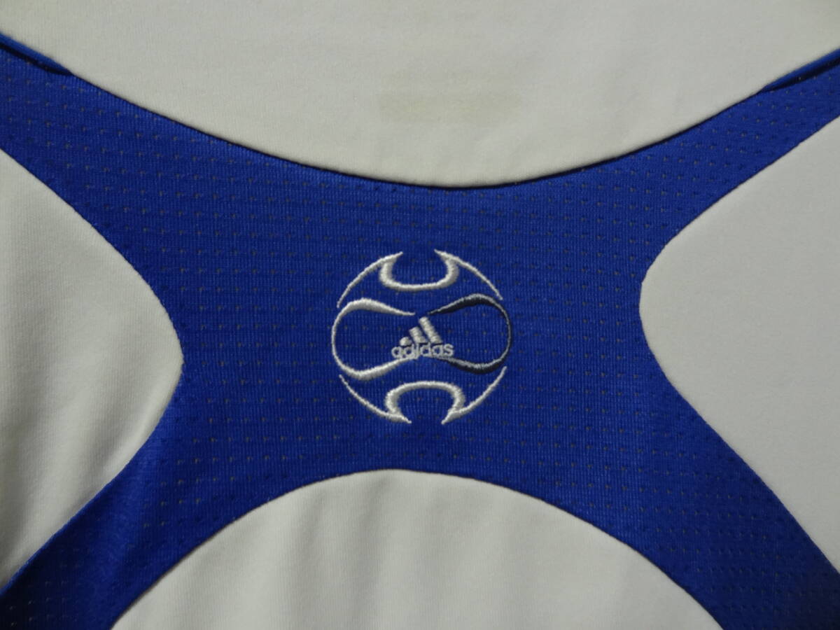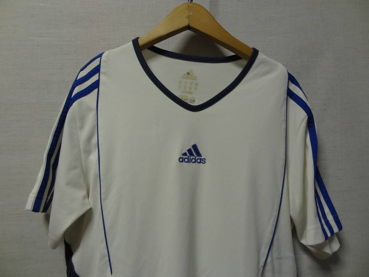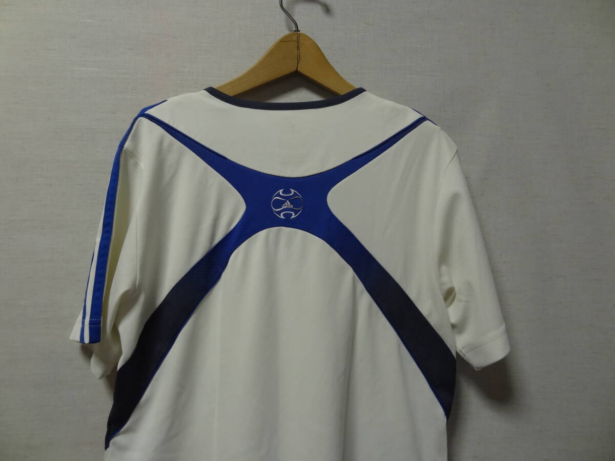全国送料無料 アディダス adidas メンズ サッカースポーツ ポリエステル100% 白X青色 半袖 ゲームTシャツ S