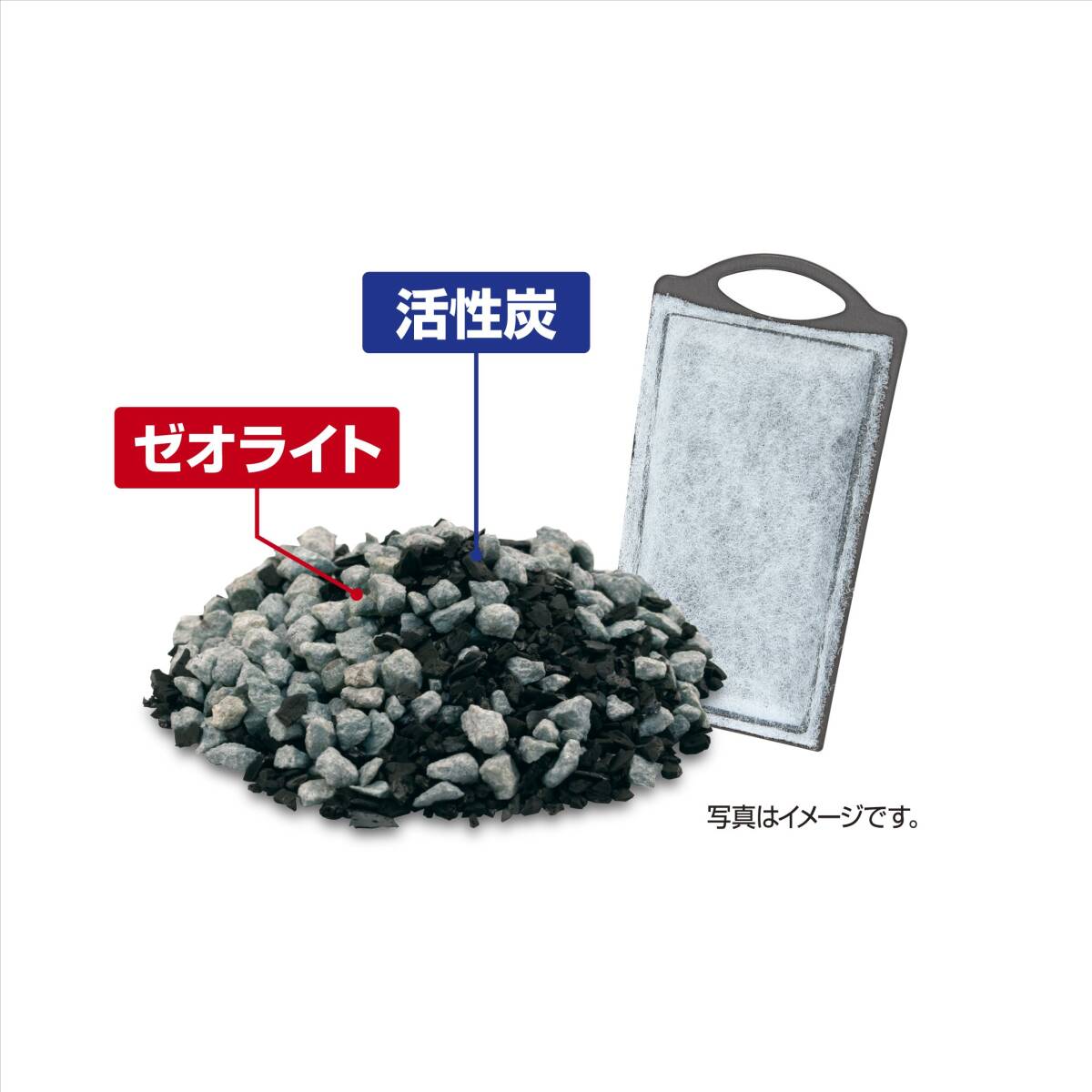 商品紹介トリプルろ過をさらに強化!バクテリアパワーでもっと水キレイ! もっと水キレイ・・・物理・生物・吸着のトリプルろ過の特殊ろ過材に、ゼオライトを配合して、さらに水キレイ。 ゼオライトをプラス・・・ゼオライトが持つ吸着パワーで、魚に有害なアンモニアを吸着。多孔質構造のため、ろ過バクテリアがしっかりと繁殖し、フンや残餌から出る、魚に有害な物質を分解します。 高吸着活性炭採用・・・総合水処理メーカー・水ing株式会社が製造している、高性能ヤシガラ活性炭「エバダイヤ」を使用。吸着効果が高く、水質浄化に優れた効果を発揮します。 お手入れ簡単!・・・手を濡らさず、汚さず、簡単に交換できます。 ※ろ過材の横幅 約8cmの他社外掛けフィルターにもご使用いただけます。 内容量:4個使用上の注意※本製品は観賞魚飼育専用です。他の目的には使用しないでください。※魚病薬などの薬品類をご使用の際は、ろ過材内の活性炭が薬品類の有効成分を吸着し、効果がなくなりますのでご注意ください。※本製品のセット直後、活性炭の粉末で水が黒く濁ることがありますが、生体への影響はありません。原材料・成分ゼオライト、ポリプロピレン、活性炭、ポリエステル使用方法本製品を水道水で軽くすすいで、お使いのフィルターの取扱説明書をよく読んで、ご使用ください。ご注意(免責)>必ずお読みください\u25cf\u672c\u5546\u54c1\u306f\u30da\u30c3\u30c8\u7528\u306e\u5546\u54c1\u3067\u3059\u3002\u25cf\u672c\u5546\u54c1\u8a18\u8f09\u306e\u6ce8\u610f\u4e8b\u9805\u3092\u5fc5\u8aad\u306e\u4e0a\u3001\u3054\u4f7f\u7528\u304f\u3060\u3055\u3044\u3002