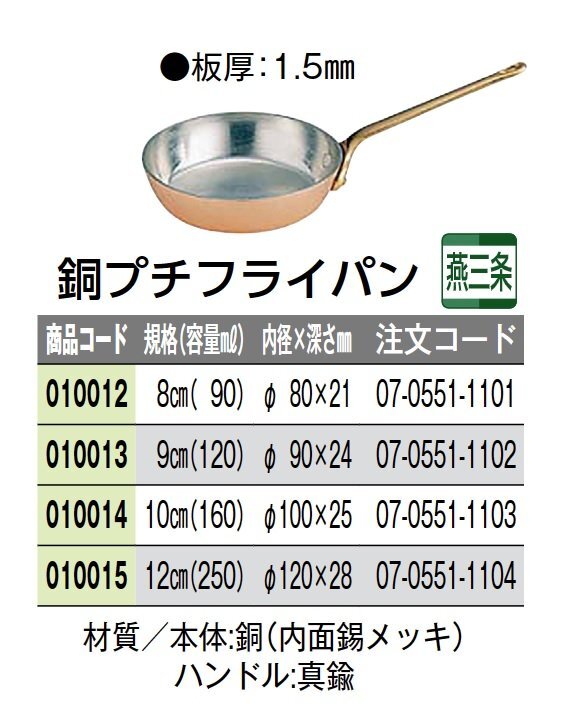 ★銅製プチフライパン径約12cm(容量約250ml)&8cm(容量約90ml)板厚約1.5mm日本製新品