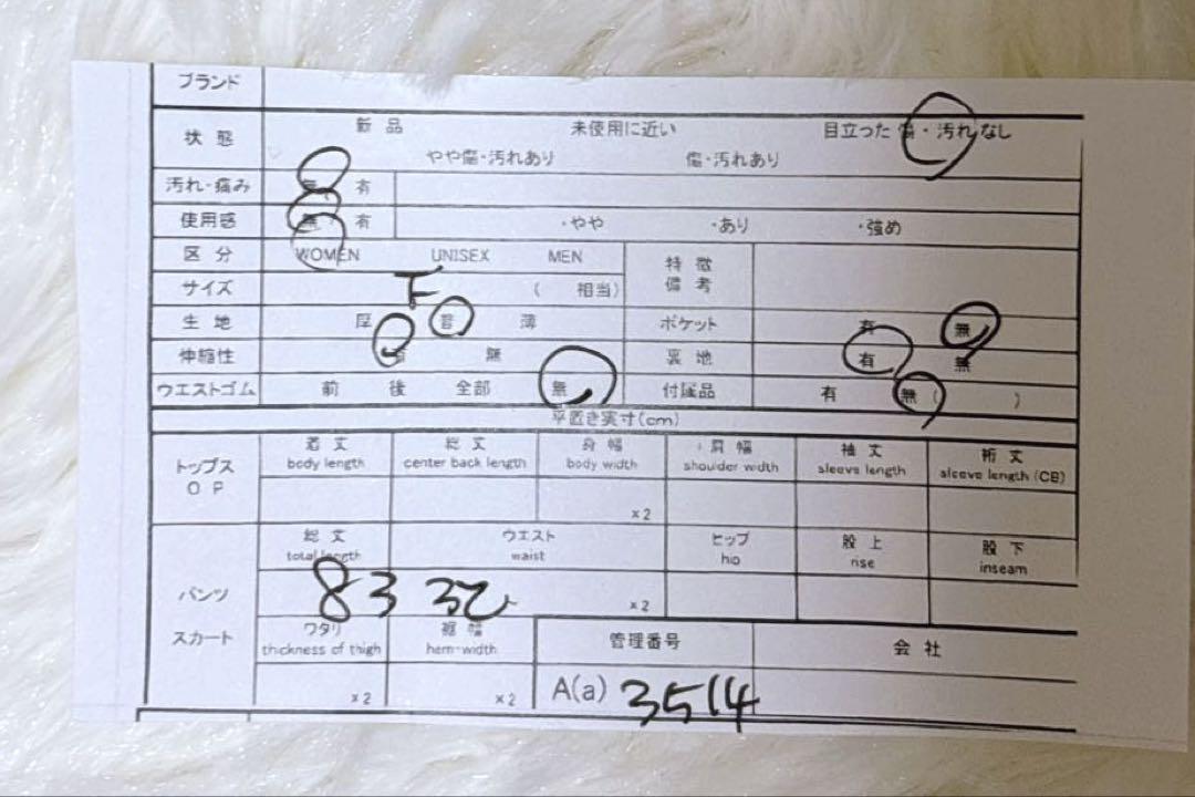 ※アパレルのブランドによりサイズ基準が異なるので、必ず採寸表をご確認の上、ご購入お願いいたします