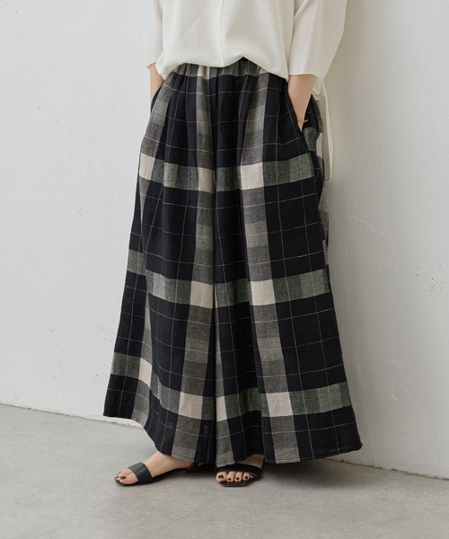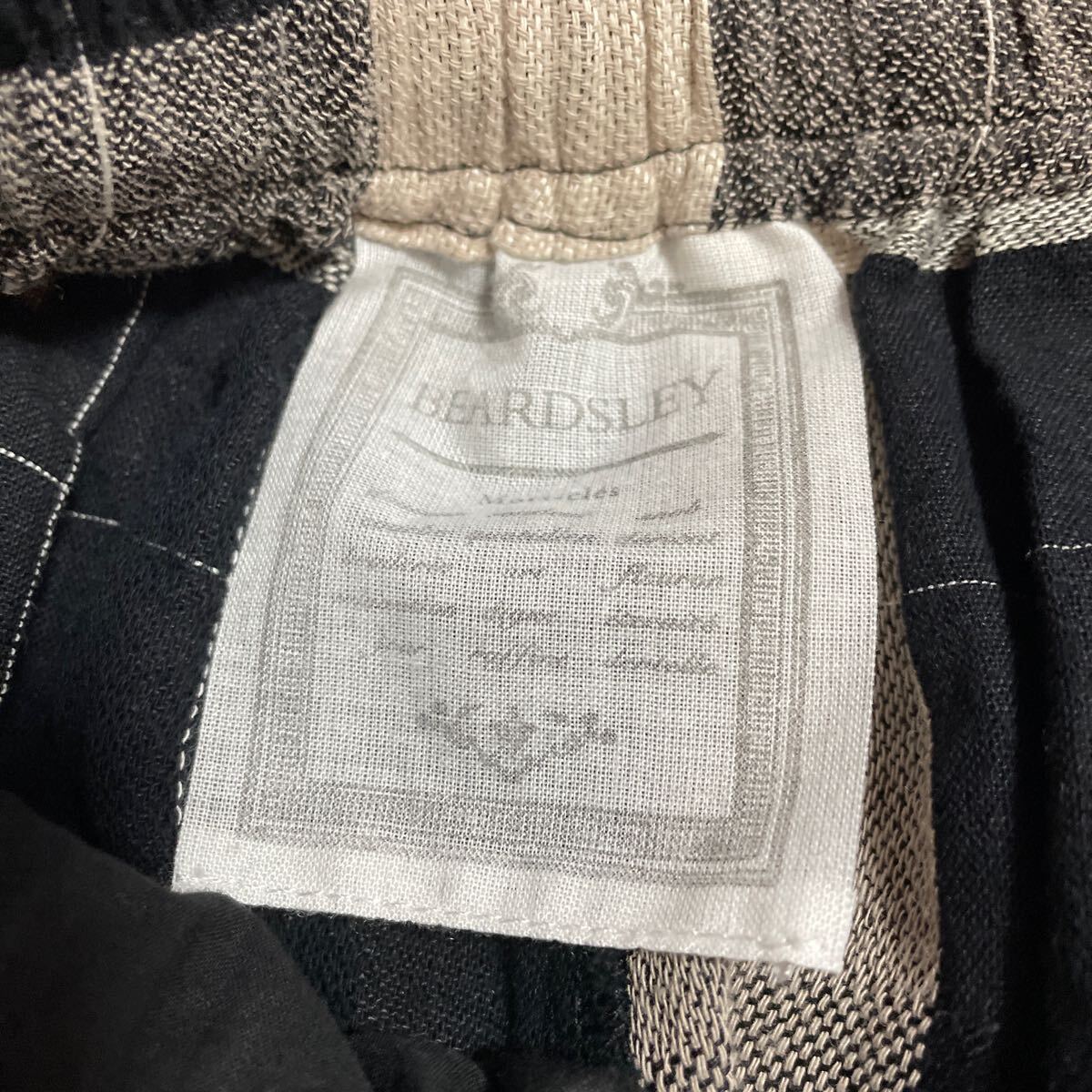 ビアズリーのリネンチェックパンツです。サイズはフリー、お色はブラックのチェックです。