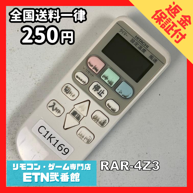 C1K169 【送料250円】エアコン リモコン / 日立 ヒタチ HITACHI RAR-4Z3 動作確認済み★即発送★ * 冷房 暖房