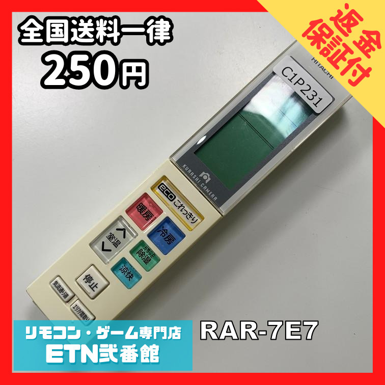 C1P231 【送料250円】エアコン リモコン / 日立 ヒタチ HITACHI RAR-7E7 動作確認済み★即発送★ * 冷房 暖房