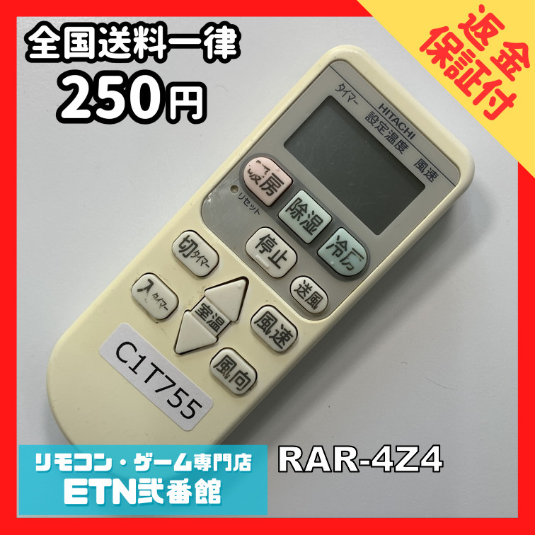 C1T755 【送料250円】エアコン リモコン / 日立 ヒタチ HITACHI RAR-4Z4 動作確認済み★即発送★ 冷房 暖房