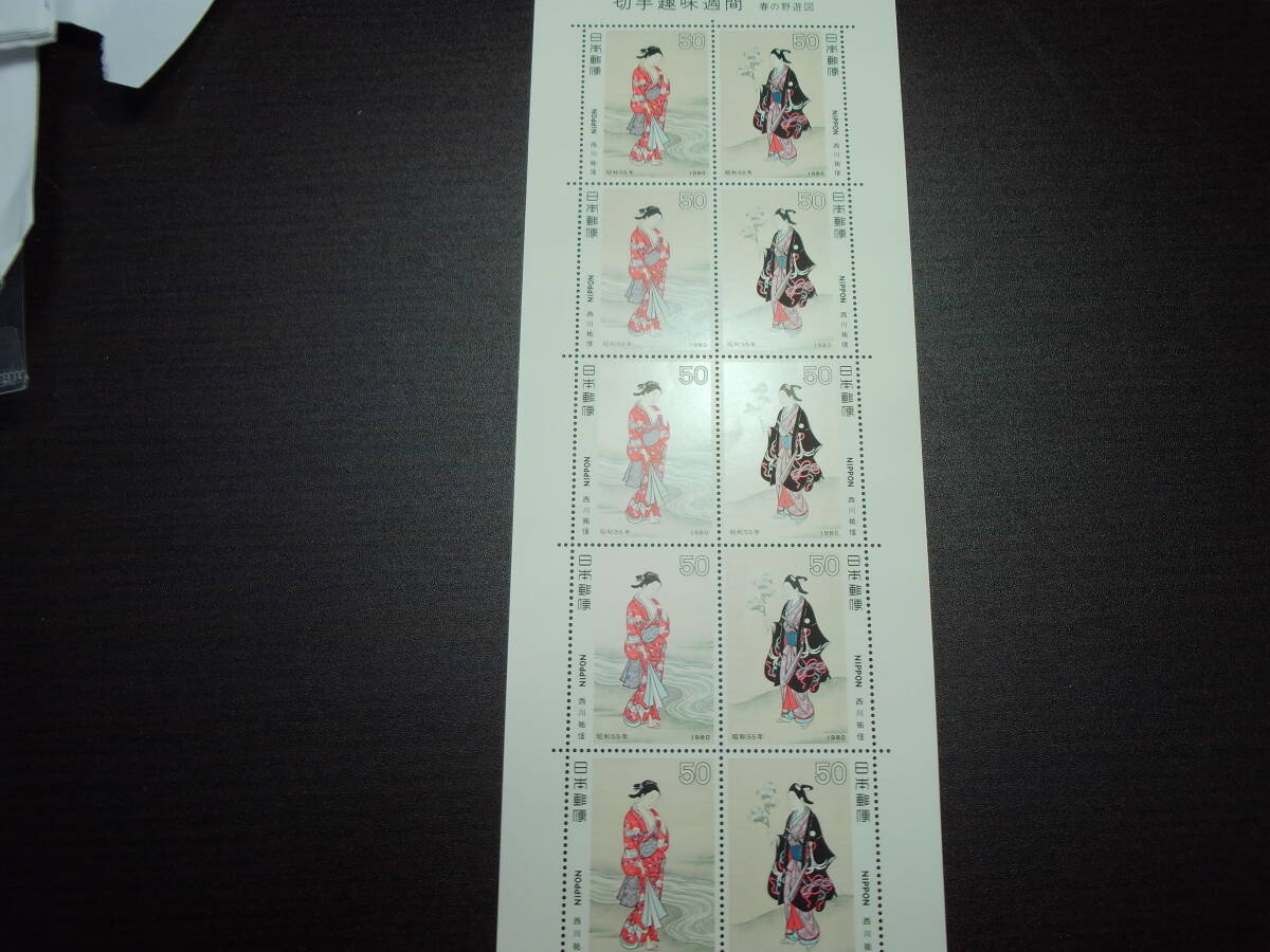 切手趣味週間  春の野遊図  3シート1セット  極美品  額面1500円  昭和55年発行