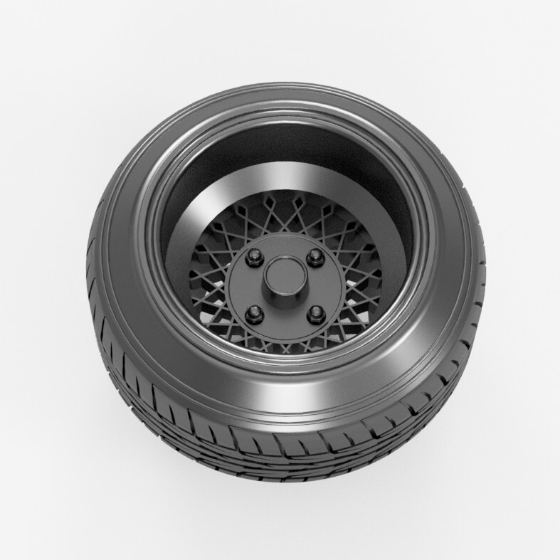 1/24スケール13インチホイールEM&高扁平引っ張りタイヤDZセット(角深リム)