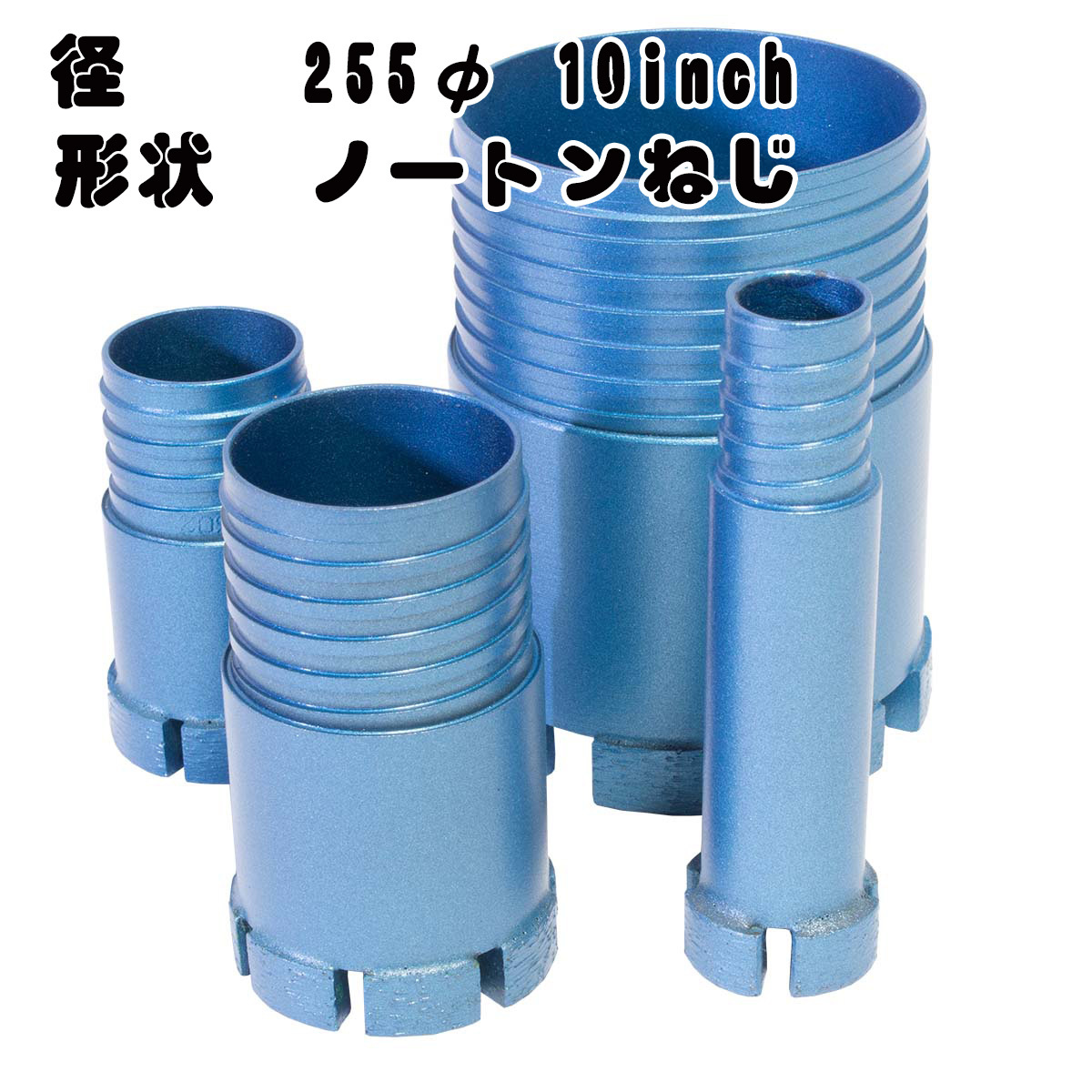 ダイヤモンドコアビット 三点式刃先 【二次製品、硬質、多配筋コンクリート用】10インチ 255φ シブヤ ノートンねじ