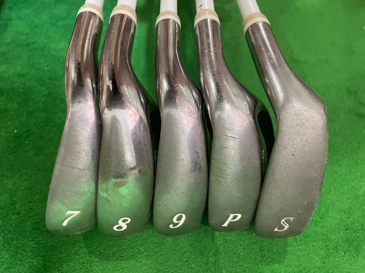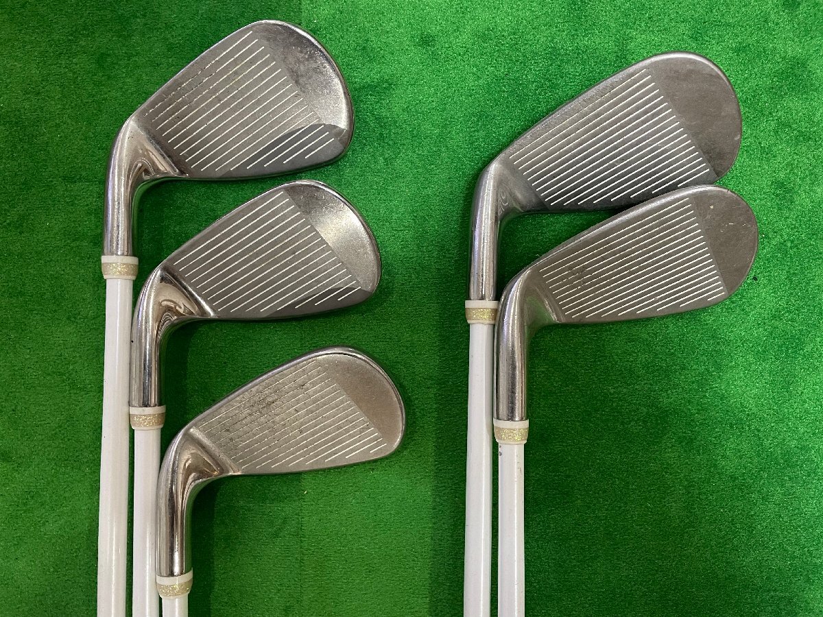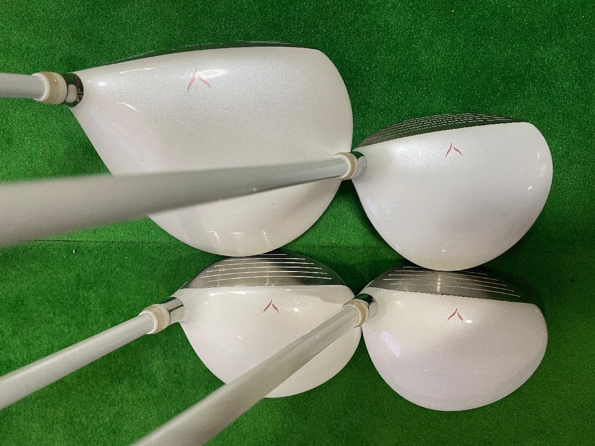 | YONEX Fiore ヨネックス レディース 1W,FW3本,アイアン7I~SW5本 計9本セット 女性専用軽量設計で易しく軽快に飛ばせる ヘッドスピード 30m/s 前後のゴルフをエンジョイしたい女性ゴルファーへ向けたモデル 「Fiore(フィオーレ)」のドライバー、フェアウェイウッド、アイアン セットをご案内いたします。 シャフト硬さ L フレックス ヨネックス FR500 カーボンシャフト ドライバー(W#1 13.5度) 38,500円(税込) フェアウェイウッド(#4 19度) 20,900円(税込) フェアウェイウッド(#5 21度) 20,900円(税込) フェアウェイウッド(#7 24度) 20,900円(税込) アイアン5本セット (#7~9、PW、SW) 60,500円(税込) ご注意事項 中古品にて劣化や摩耗など使用感等がございます。 特にグリップは劣化しており、交換が必要です。 また、ヘッドカバー も劣化摩耗があり、一部穴が空いております。 ノークレーム、ノーリターンでお願いします。 キャンセル・取り消し・返品は承れませんので、商品の画像・コメントなどをよくご確認の上ご入札下さい。 ※中古の商品ですので、細かいことが気になる方、神経質な方は入札をお控え下さい。 万が一売切れの場合は、取り消しをさせて頂く場合がございますので、御了承ください。 | |||