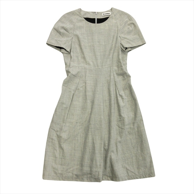 ジルサンダー JIL SANDER ワンピース ドレス カットソー タック プリーツ ウール 34 グレー レディース◆7