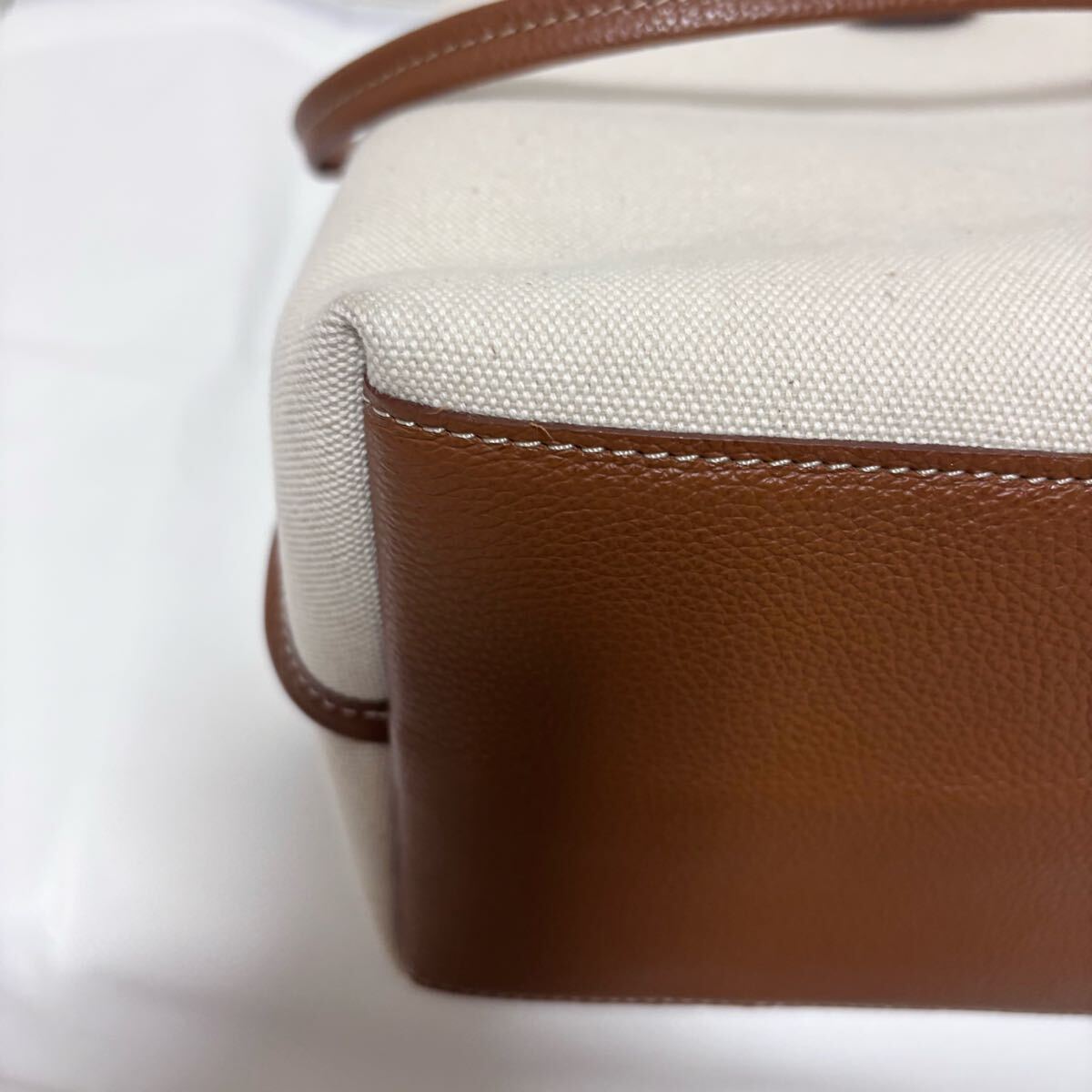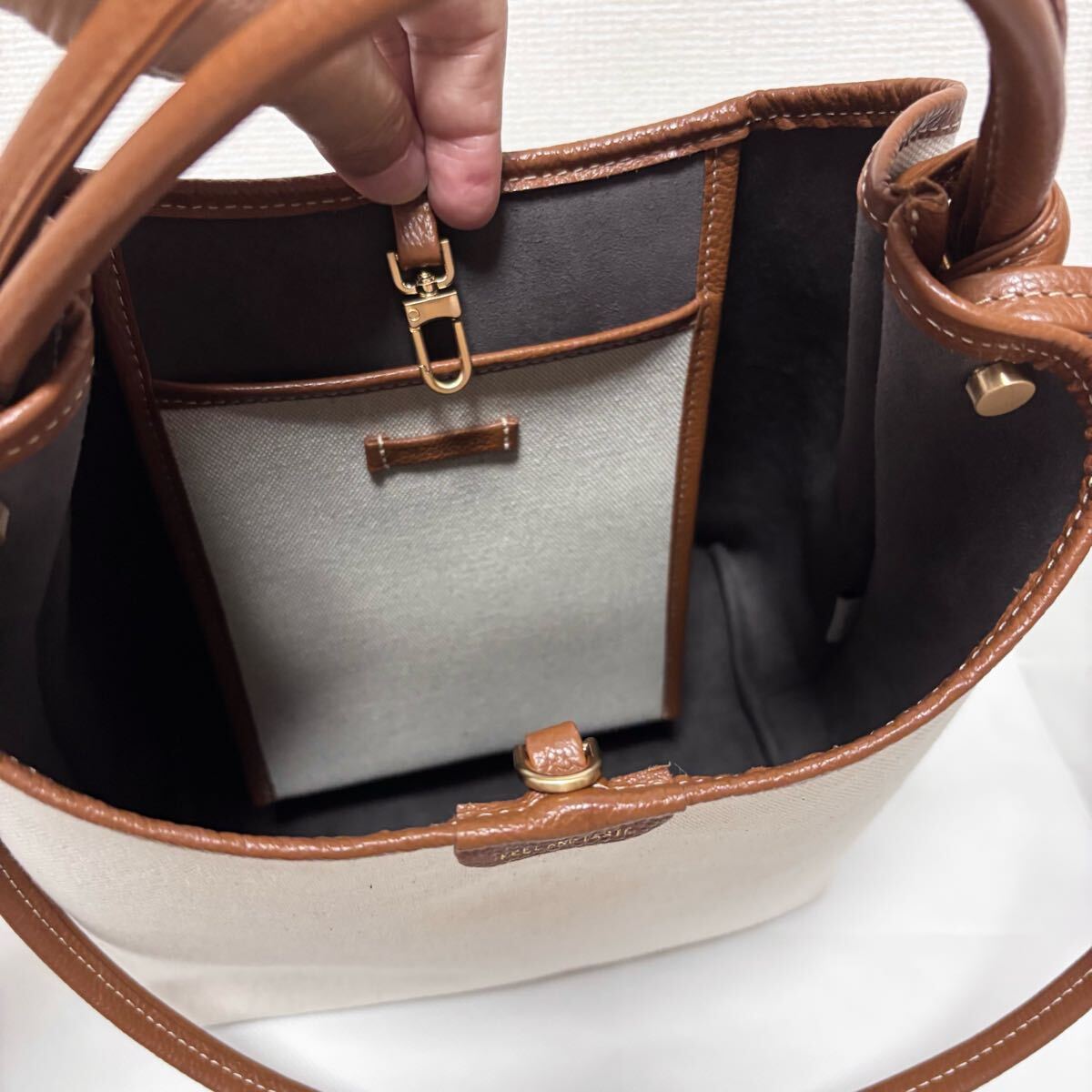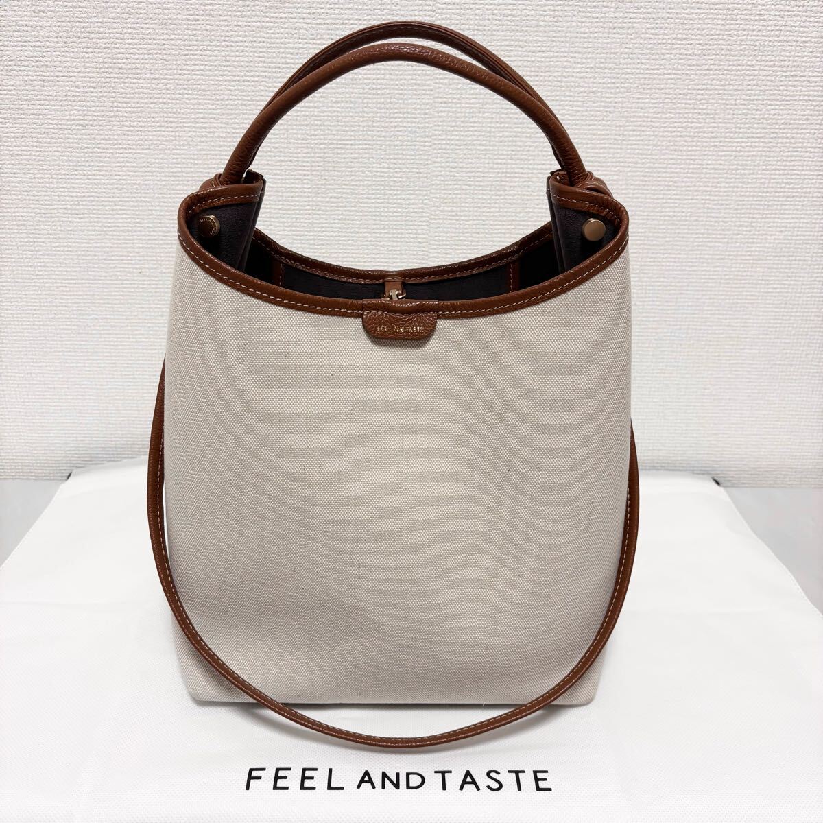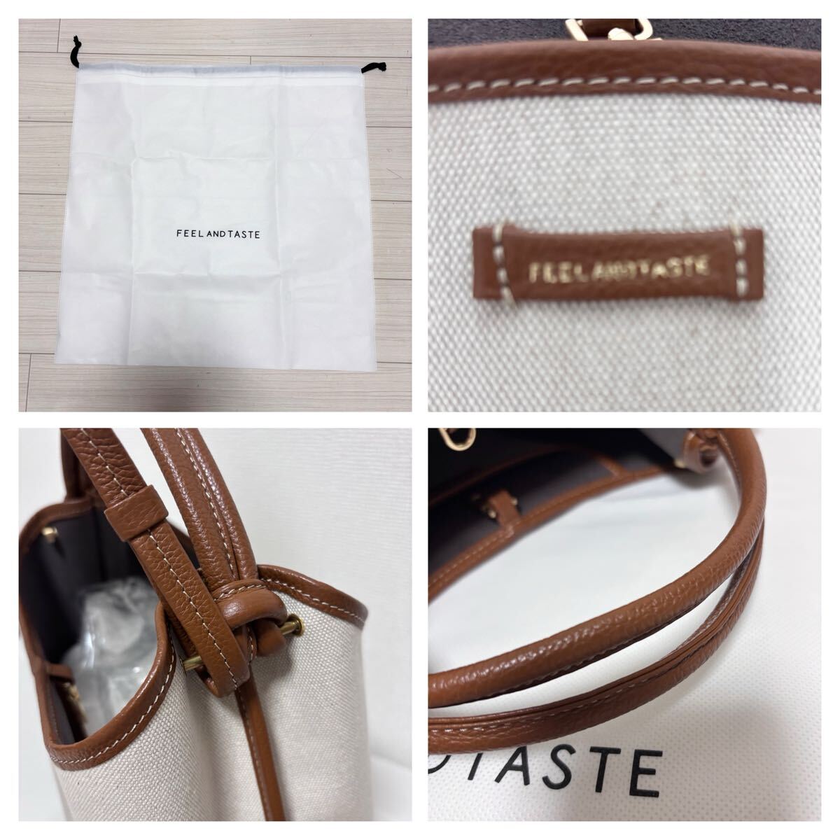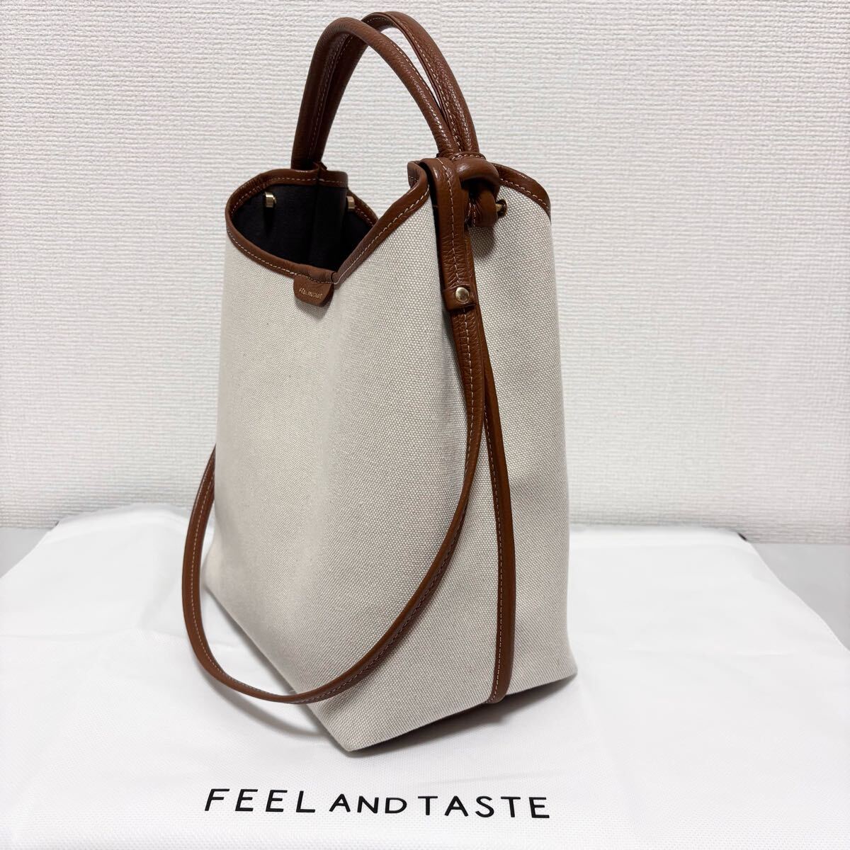 こちらは、新品同様 25ss■FEEL AND TASTE bar-knot バッグ ライトベージュ ブラウン ボンディングキャンバス レザー 2way canvas tall フィールアンドテイスト 日本製 保存袋 定価37,400円
