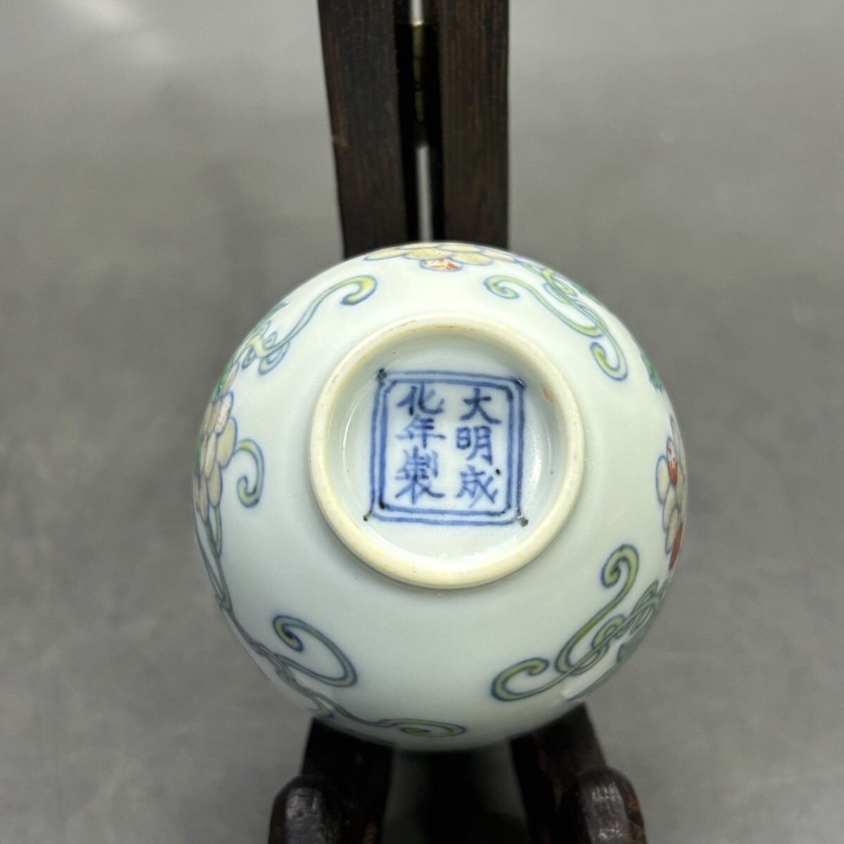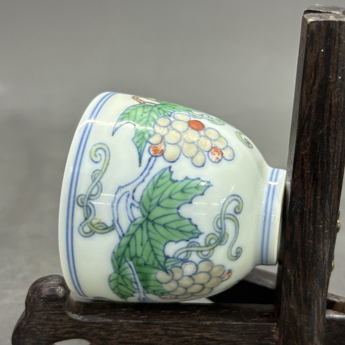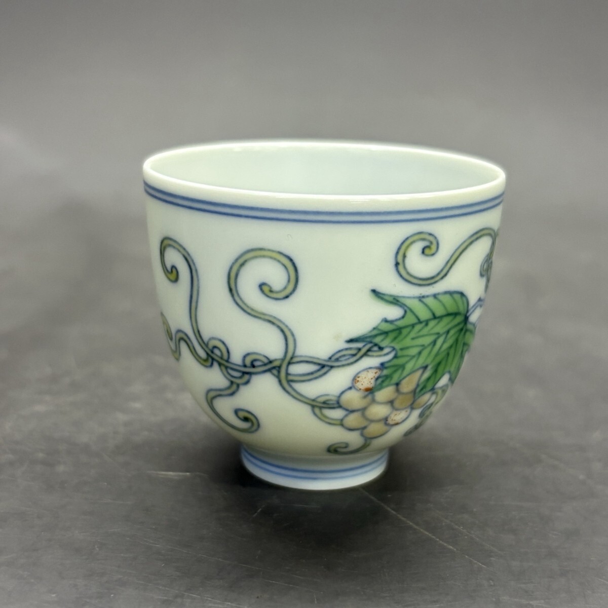 明代 大明成化年製 陶磁器 鬥彩葡萄紋 対杯【仁】染付 置物擺件 古賞物 古美術 中国古玩 蔵出