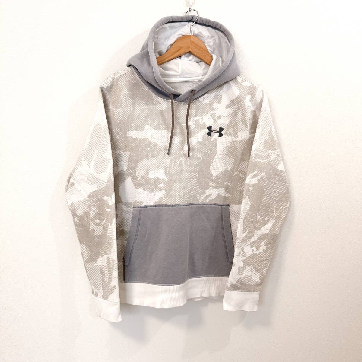 f3105ii UNDER ARMOUR(アンダーアーマー)サイズM位 パーカー 裏起毛 カモフラージュ柄 グレー×ホワイト メンズ コットン100%